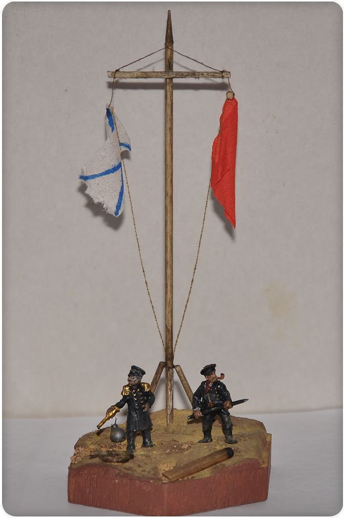 Андрей прав, роспись фигурок,не аккуратная, Андреевский флаг из обрывка туалетной бумаги. Всё это смотрится не очень хорошо.