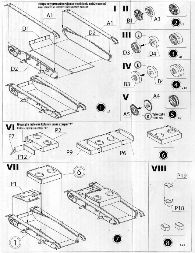 Набор полный шлак. На фото это прекрасно видно. Ходовую только в мусор. Всю вместе с крыльями. Корпус пилить долго и упорно, стыкуемость деталей производителем не предусмотрена. Хотя сам процесс сборки не сложен.
