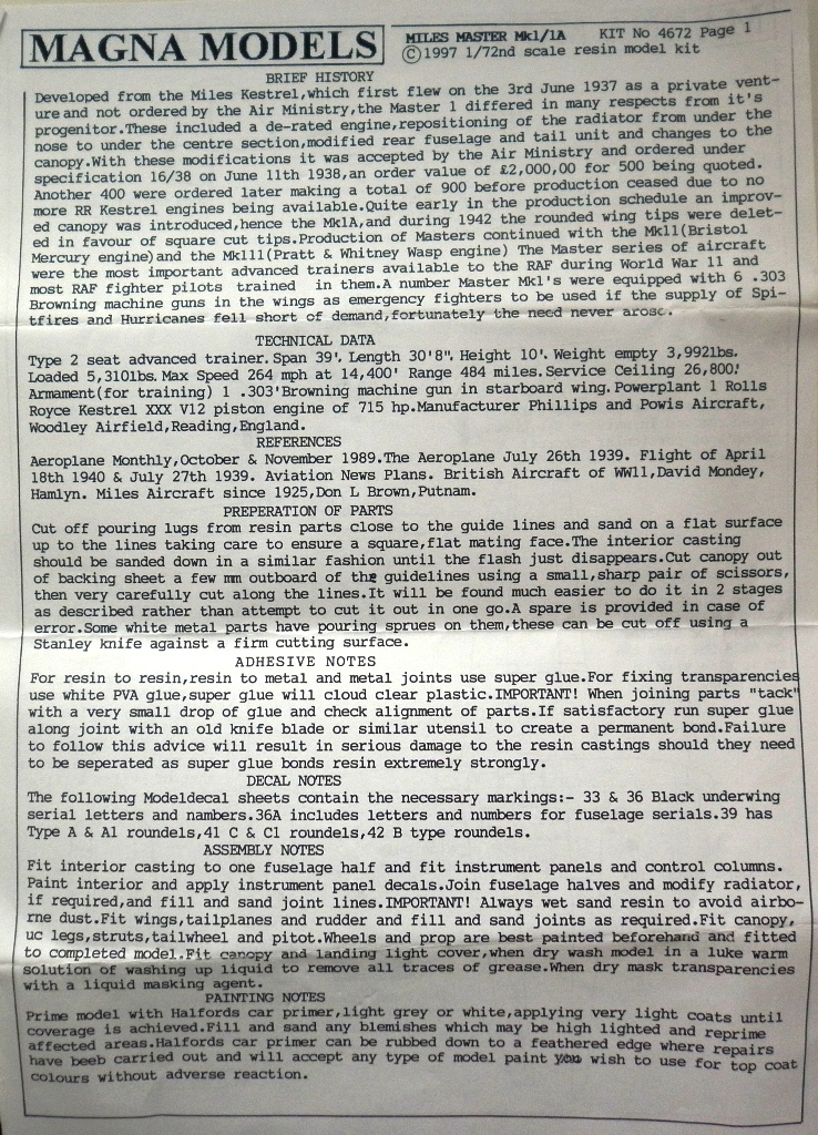 Инструкция достойна похвалы. Имеются подробные проекции, подробная схема сборки , два листа с предлагаемыми окрасками.