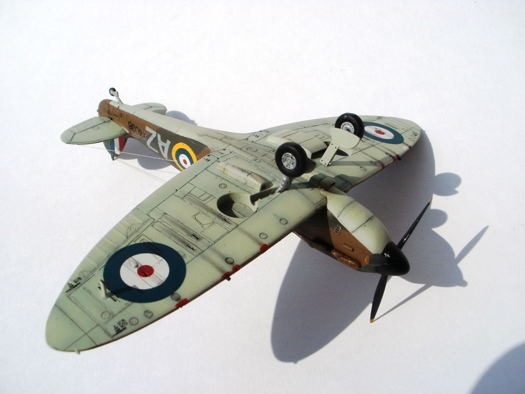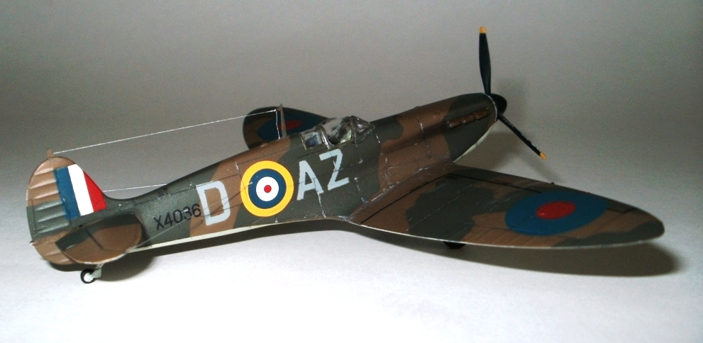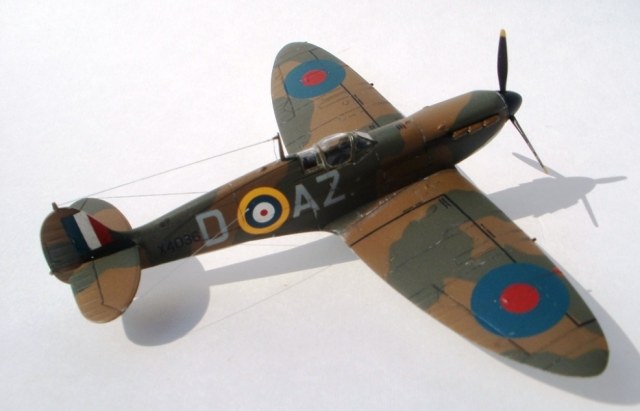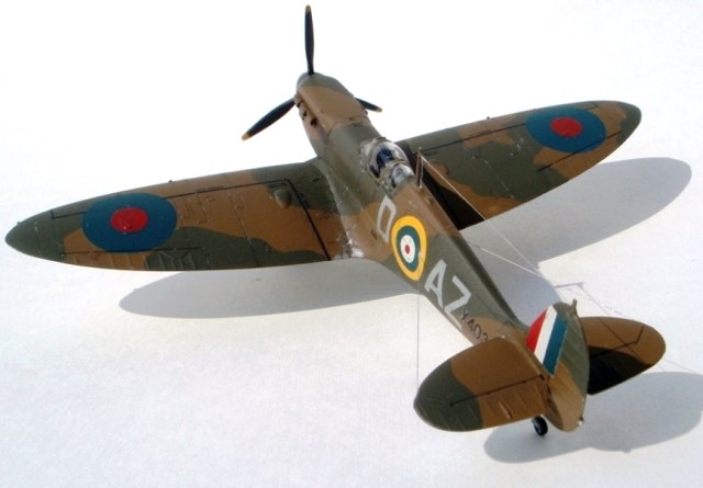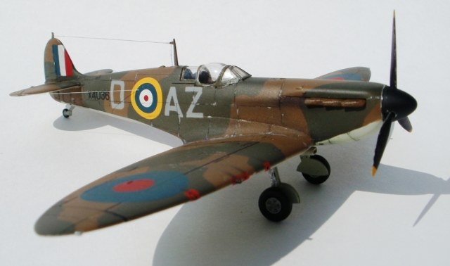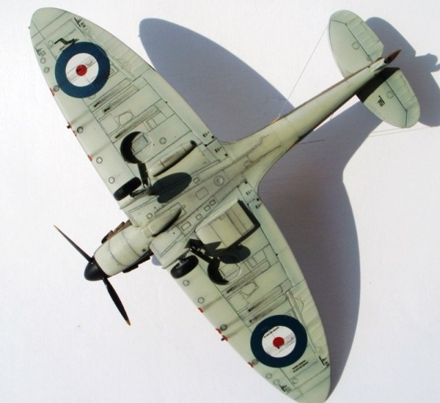 Всем привет! Представляю свою работу, которую недавно завершил. Тамиевский Спитфайр Мк 1, борт принадлежал л-ту Роберту Доу, одному из самых результативных асов Битвы за Британию. Первый раз выставлял ее на данном сайте, однако учитывая замечания коллег, решил заново перекрасить и выбрать другой борт. Модель собрана из-коробки и получилась очень многострадальной. Два раза купал ее в кроте, из-за проблем с окраской. Из доработок только имитация гидравлики на стойках шасси и растяжка антенны из тянутого литника. Окраску производил красками Humbrol и Gunze и использовал глянцевый и полуматовый лак от Valejo. Расшивку выделил самодельной смывкой из художной пастели на воде с добавлением моющего средства. Буквенные коды нанесены самостоятельно, с помощью самодельных масок. Опознавательные знаки и почти вся "техничка" взята от декали Authentis Decals. Бортовые номера наборные. Выхлопы из патрубков сделаны сухими пигментами, а пороховые газы - художественной пастелью, с помощью сухой кисти. В принципе, все. Всем приятного просмотра!