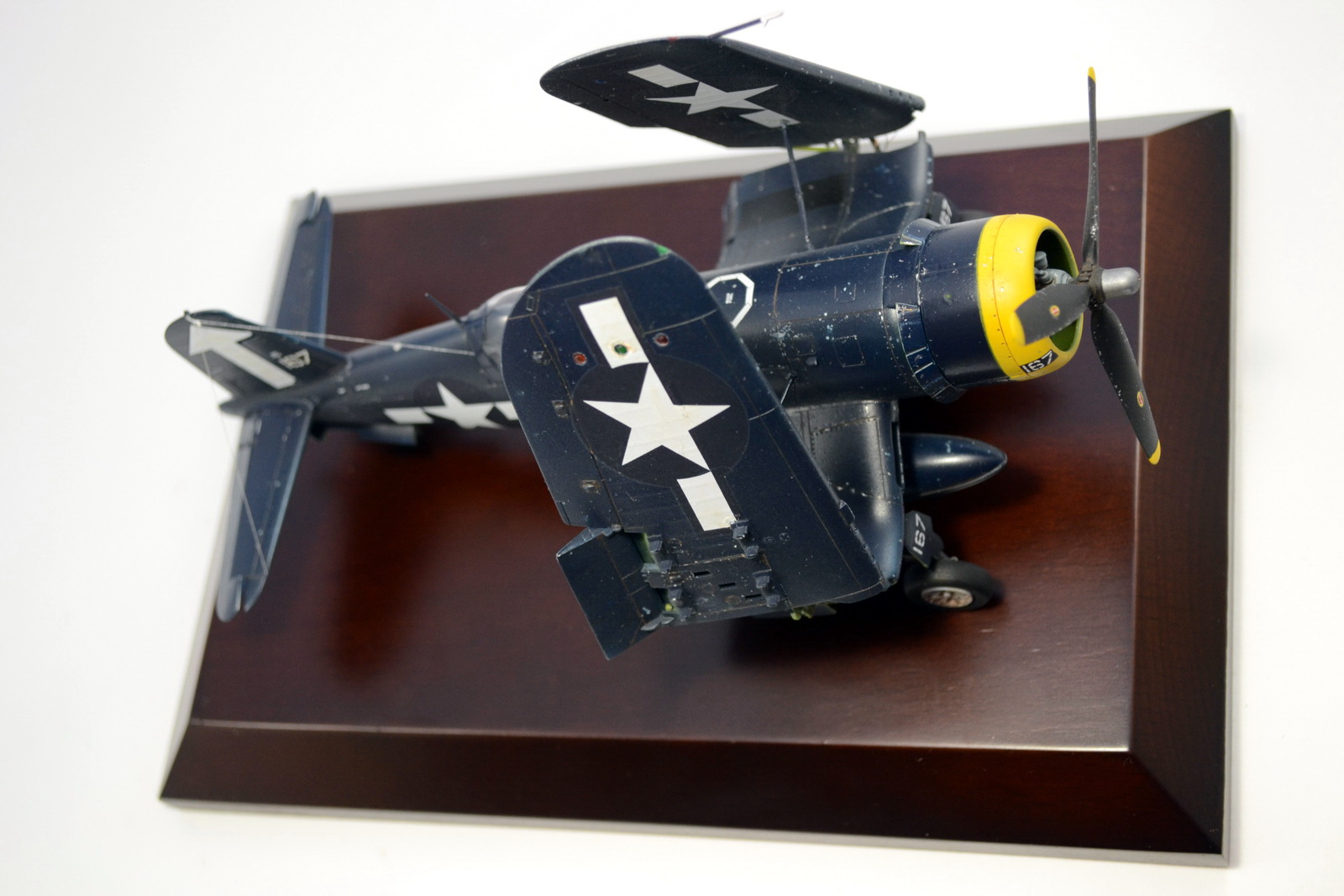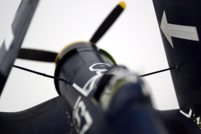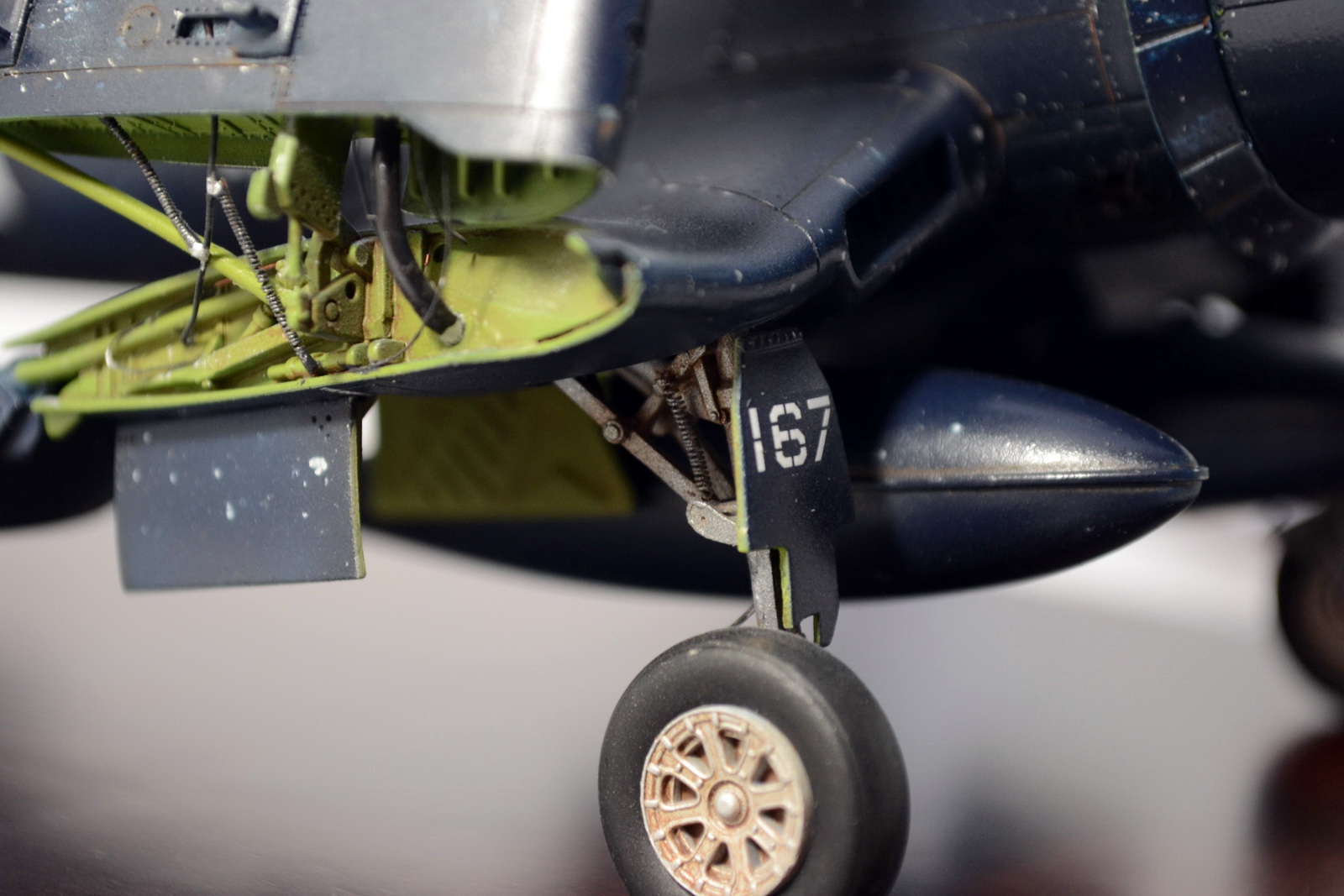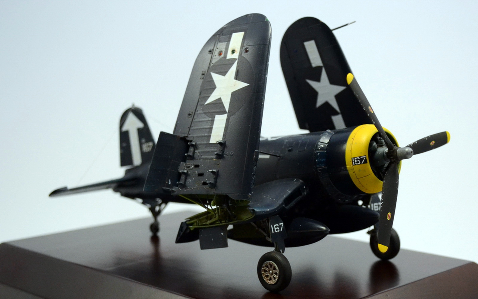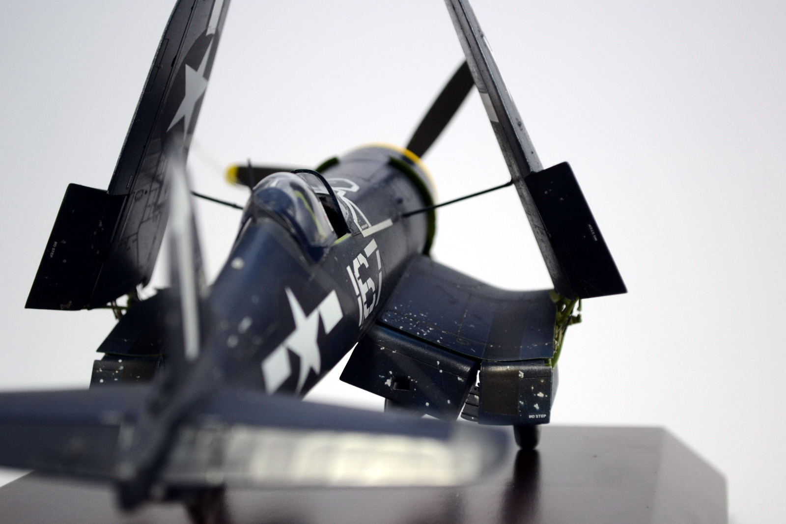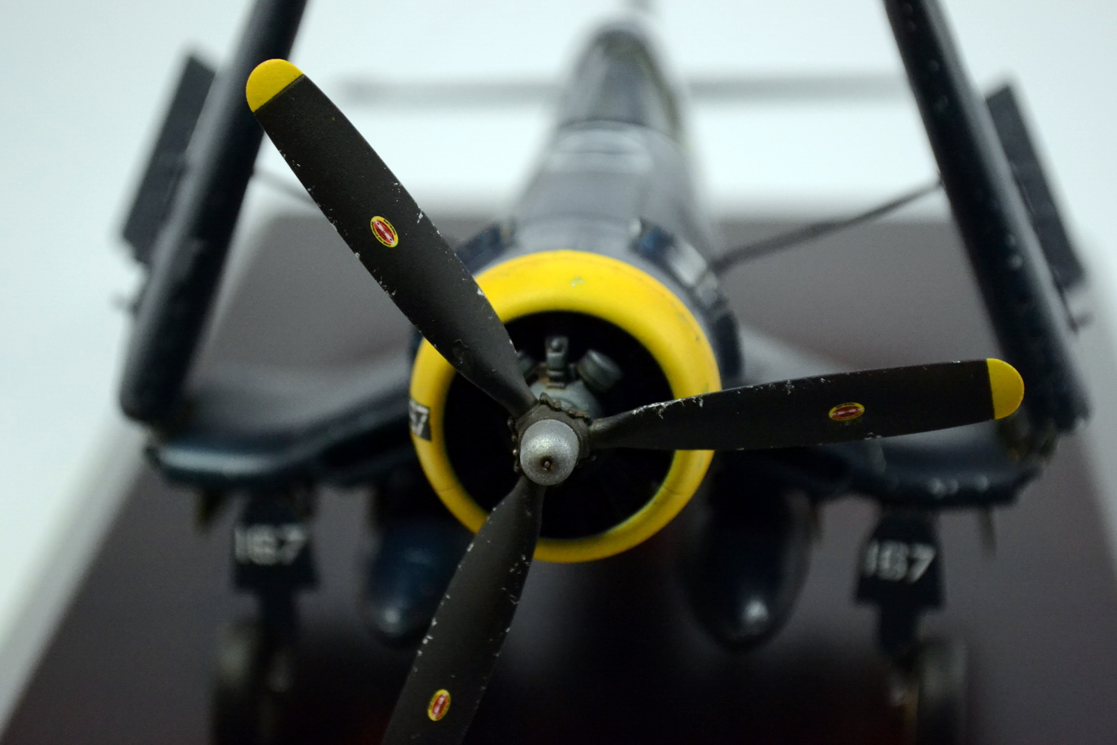 Люблю палубники, в свое время долго сидел на них. Корсар зачетный, особенно по доработкам. С конструктива: - я бы не рискнул использовать соль для сколов. И винт должен быть близкий к девственному состоянию если самолет используется только с палубы, ни о каких повреждениях ЛКП не может быть и речи - как вы понимаете! Максимум более матовая краска на кромках лопасти на тыльной стороне. Попробуйте Вам понравиться.