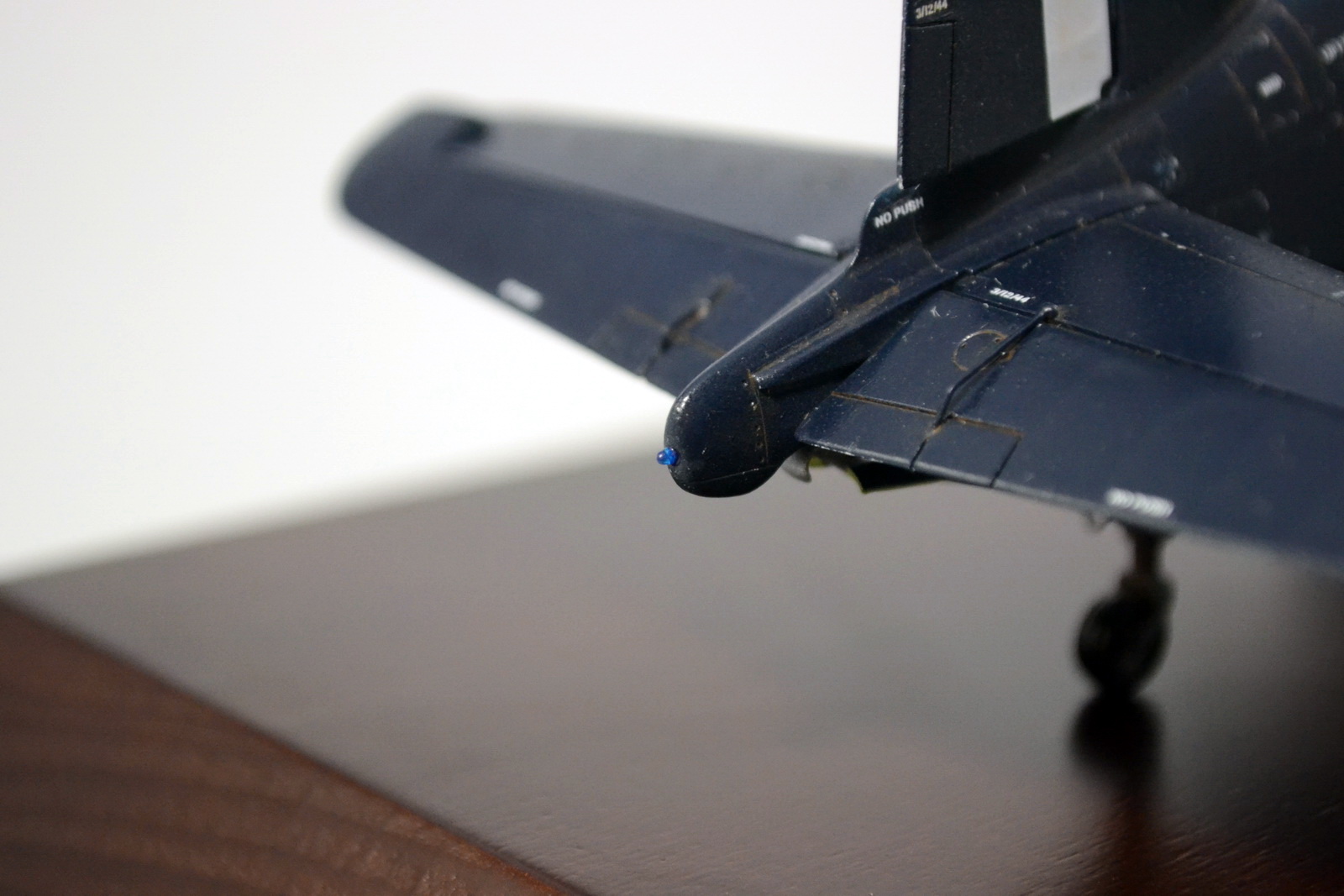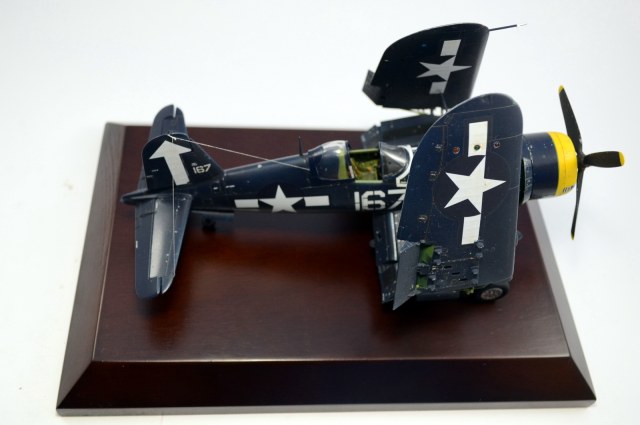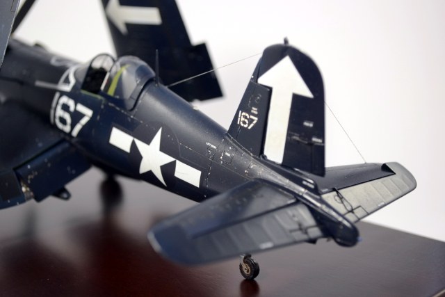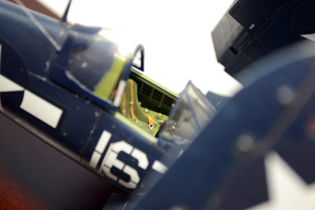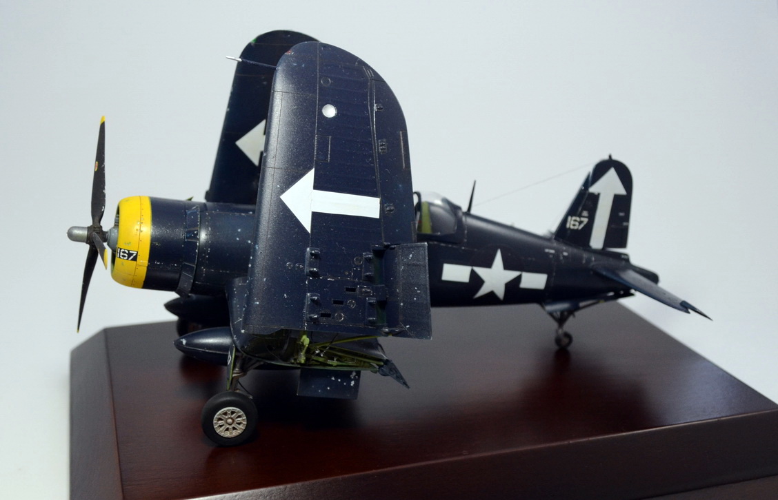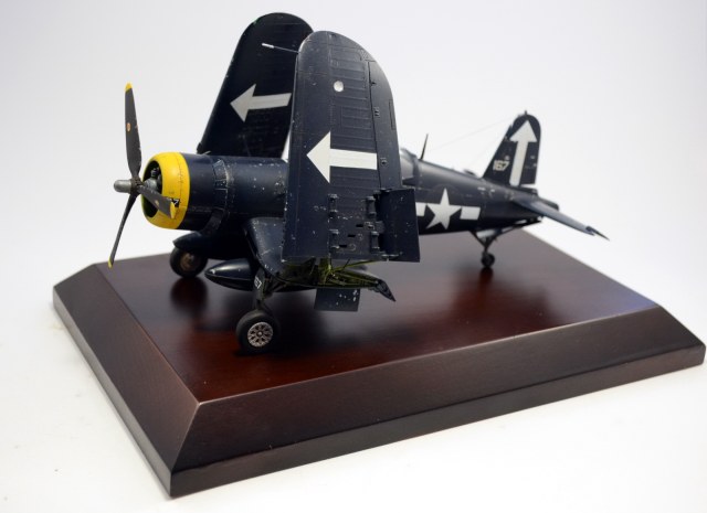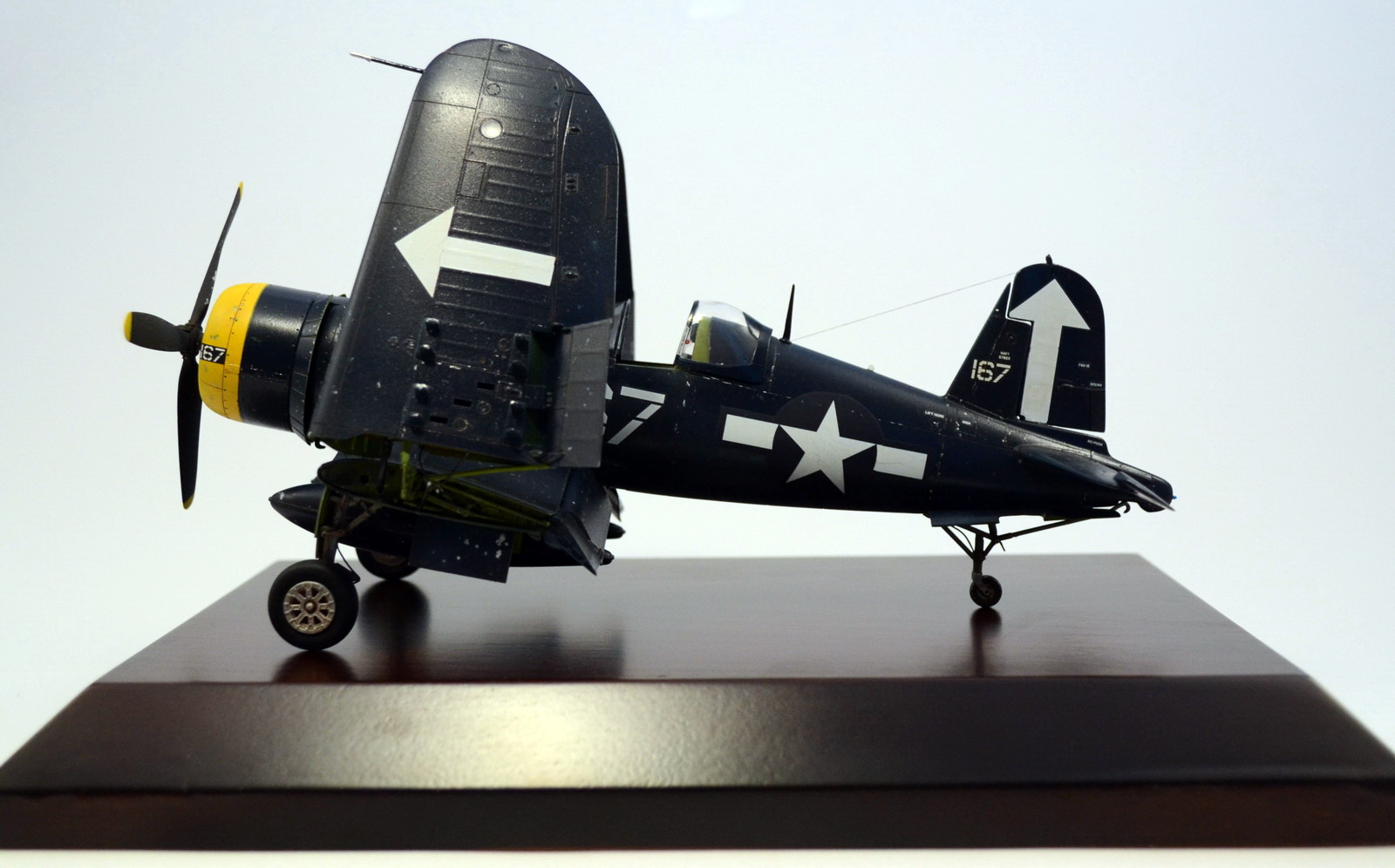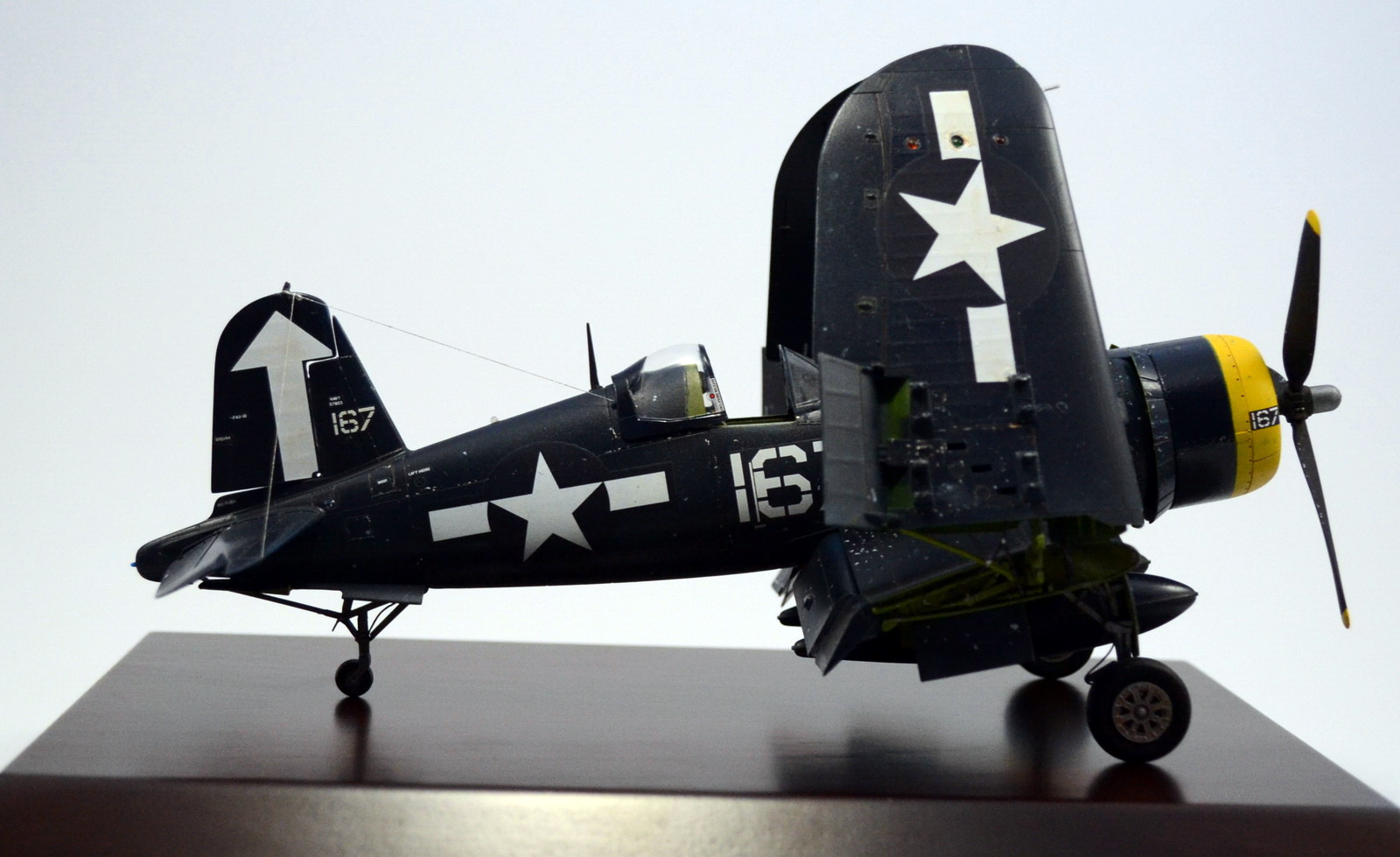 Люблю палубники, в свое время долго сидел на них. Корсар зачетный, особенно по доработкам. С конструктива: - я бы не рискнул использовать соль для сколов. И винт должен быть близкий к девственному состоянию если самолет используется только с палубы, ни о каких повреждениях ЛКП не может быть и речи - как вы понимаете! Максимум более матовая краска на кромках лопасти на тыльной стороне. Попробуйте Вам понравиться.