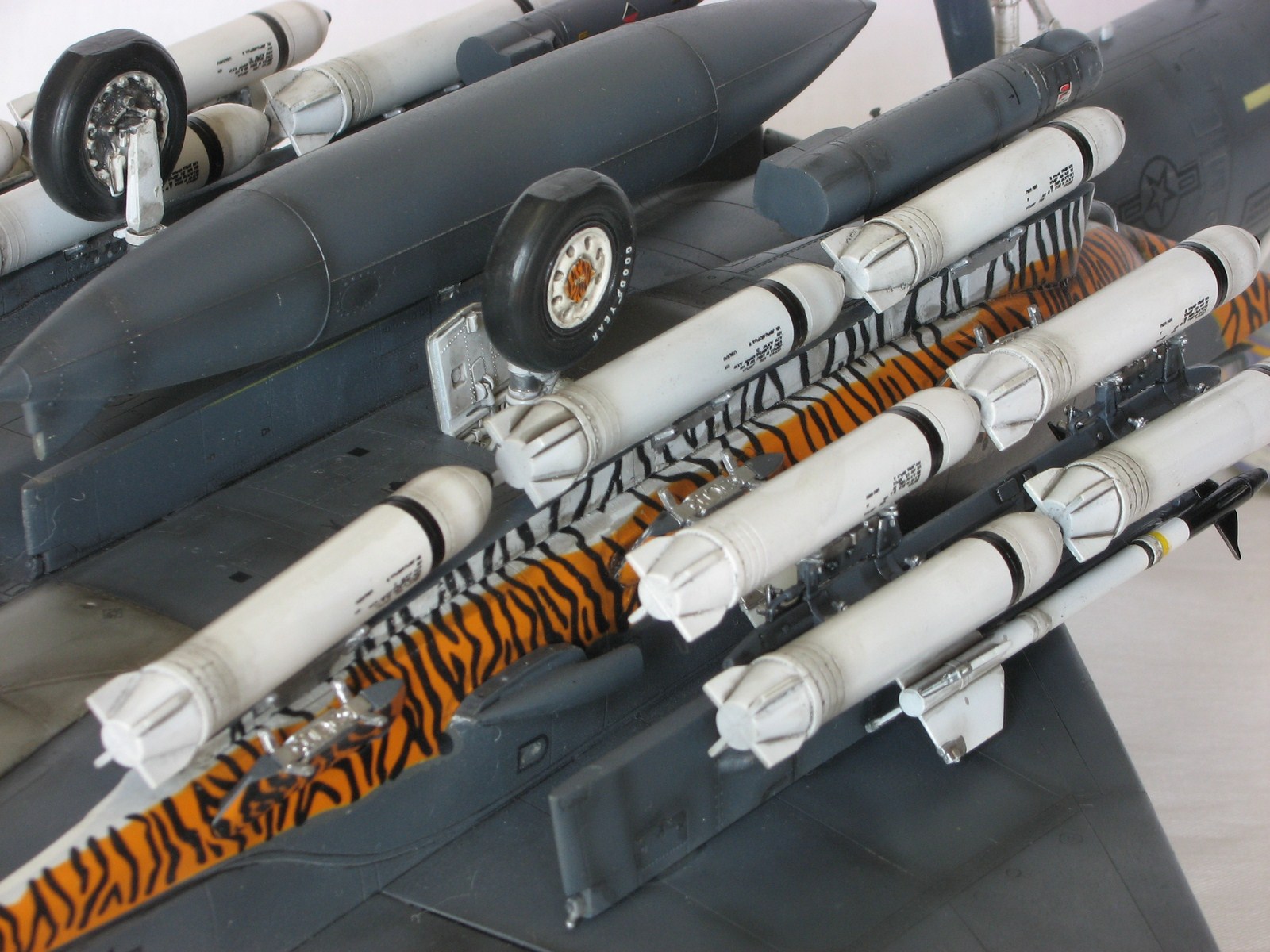Спасибо за ИГЛ!!! Белый цвет бомб предлагался Тамиевской инструкцией. Реактивные сопла становятся белыми по мере наработки двигателей. В моё оправдание, давайте предположим о "девственной" наработке моих движков??? Шутка. Хотя абсолютно согласен с вами, белёсыми они выглядели бы по лучше
