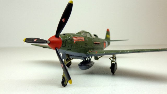 Подозреваю, что вызову критику "знатоков-покрышкиноведов". Да, вы совершенно правы, у самолета с сер.№29004 не было красного кока и пилотки, как не было и победных звездочек, и лопасти не те и т.д. Сделал я в общем "собирательный образ", просто в тот момент хотелось сделать поярче, попестрее, но готов из-за этой преднамеренной ошибки перенести модель в "Песок", ежели будет такое мнение.