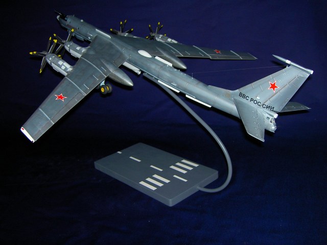 Здесь был однажды Ту-95, весь сильно запачканный сажей. Я очень боялся переборщить с этим делом, ну и, видимо, недоборщил ))) А вообще я пачкал. Не пойму почему, но на фото сильно искажается реальность. На живом есть очень даже симпатишный пачканный шлейф за каждым движком ))