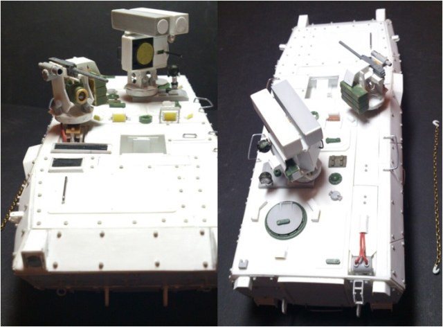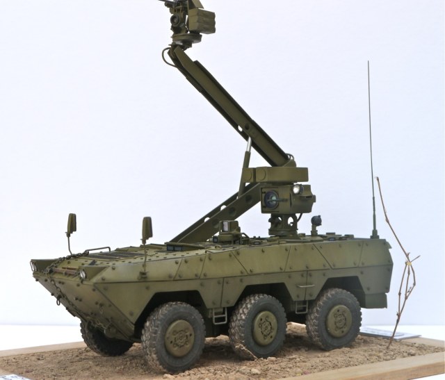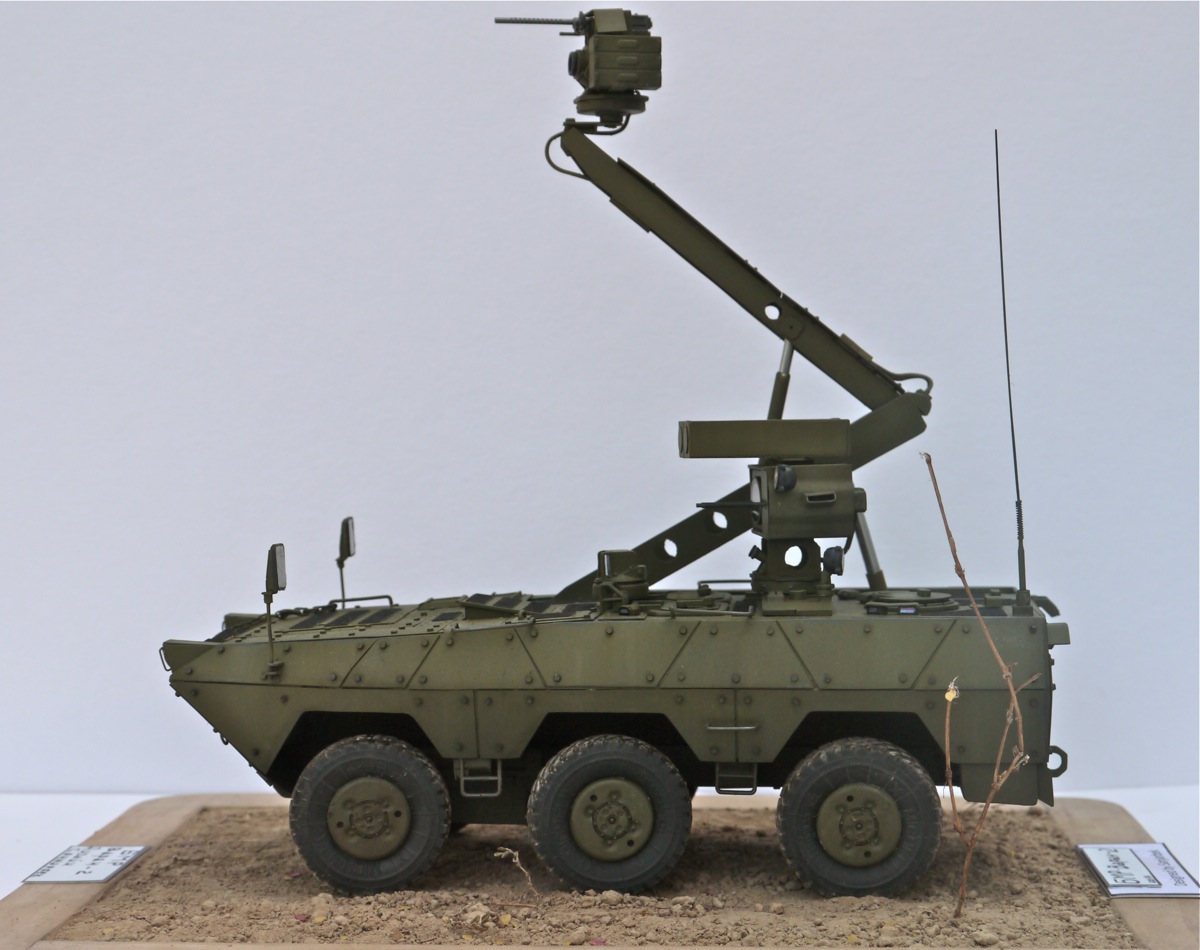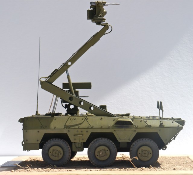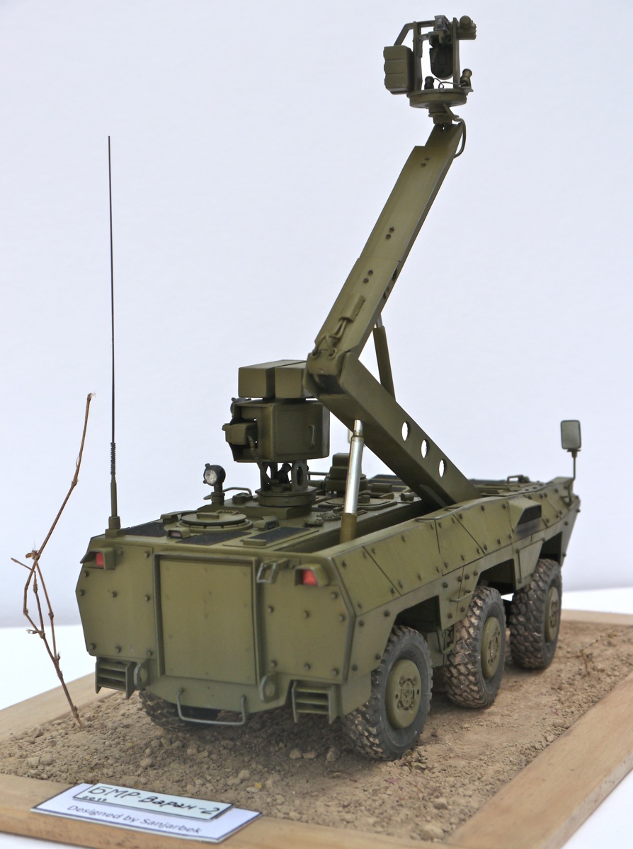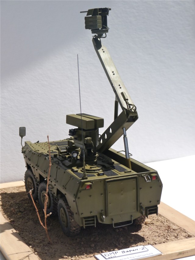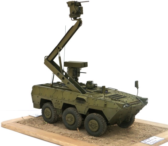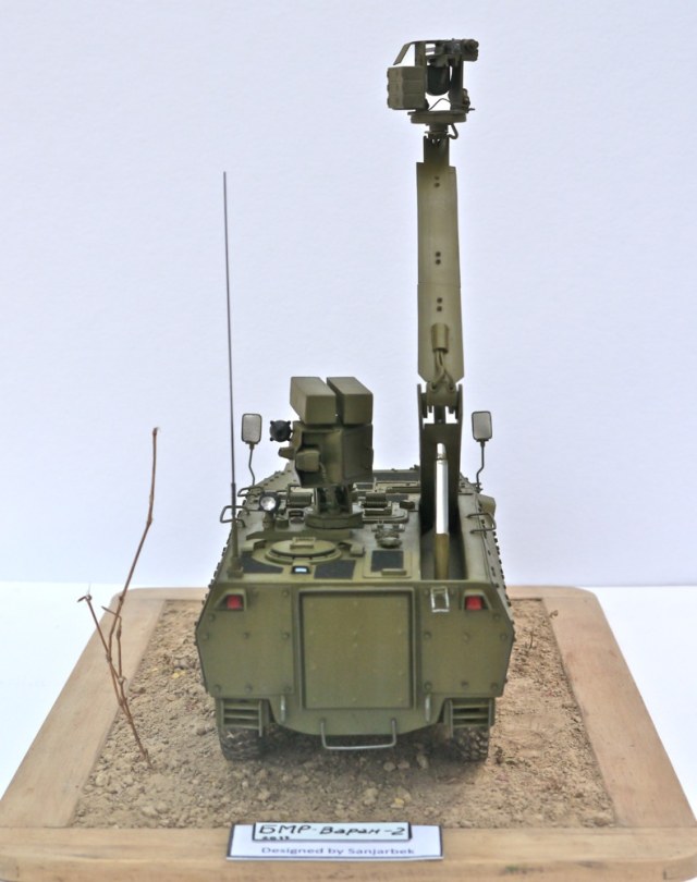 Если вы посмотрите на певый "Варан", то он имел "Жирафу"-поднимающийся турель которая обеспечивала машине вести разведку и обстрел цели не попадая в поле зрения врага. Второй вариант "Варан"а также оснащён такой системой. БМР "Варан-2":