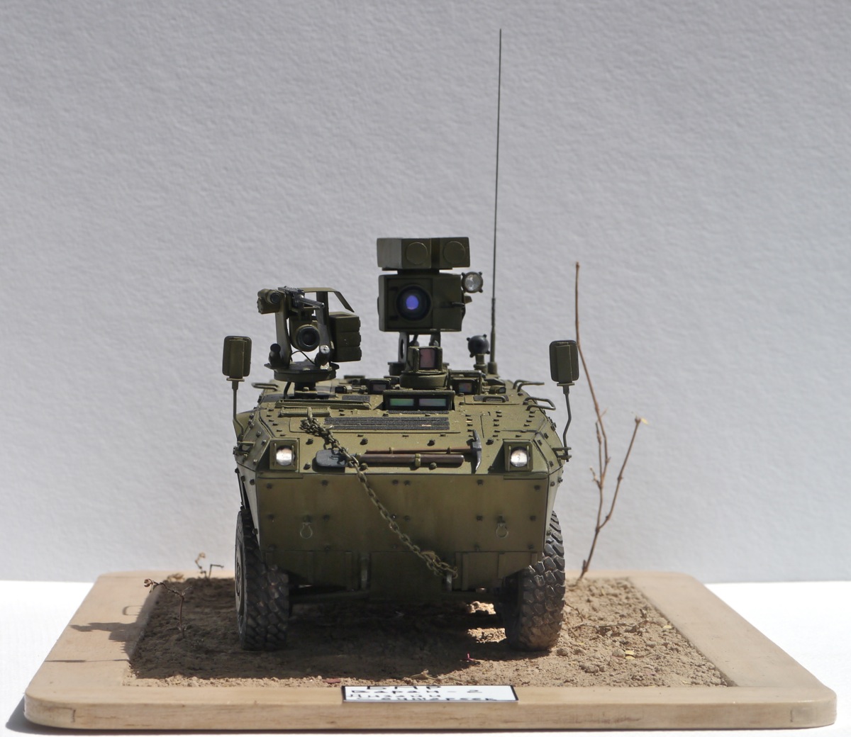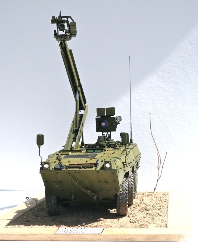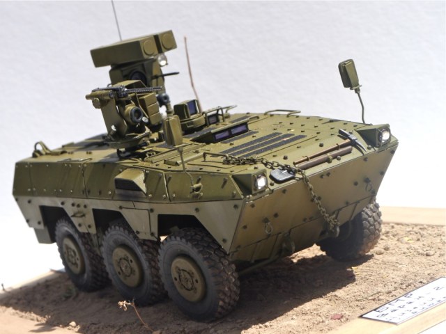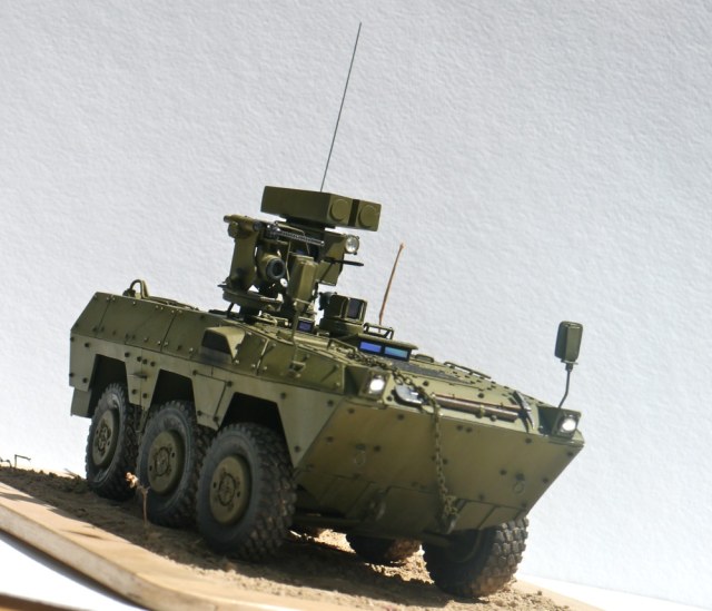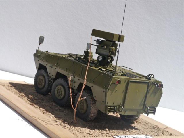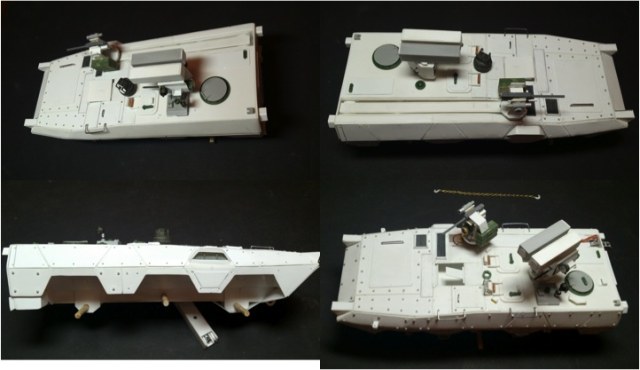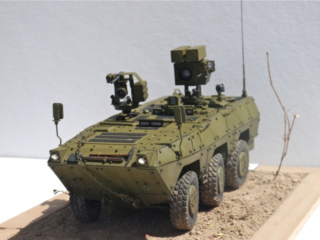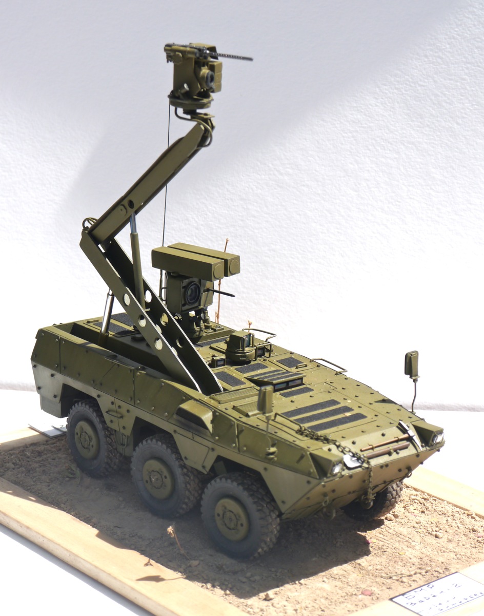 Поздравляю с очередной интересной работой. Выглядит как реальный образец БТТ. Из мелких придирок - не очень ясно, как организован обзор водителя вперед? Ну и вызывает сомнение прочность шарниров турели при стрельбе. Но это так, брюзжание :-)