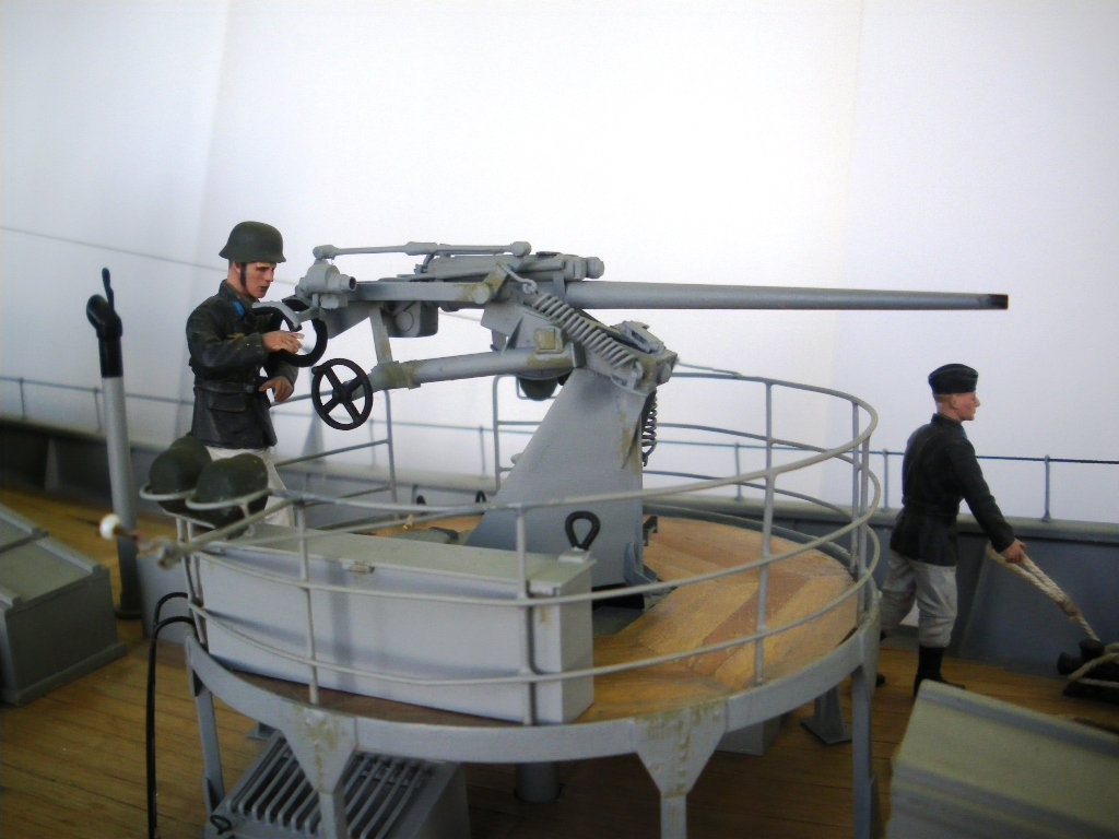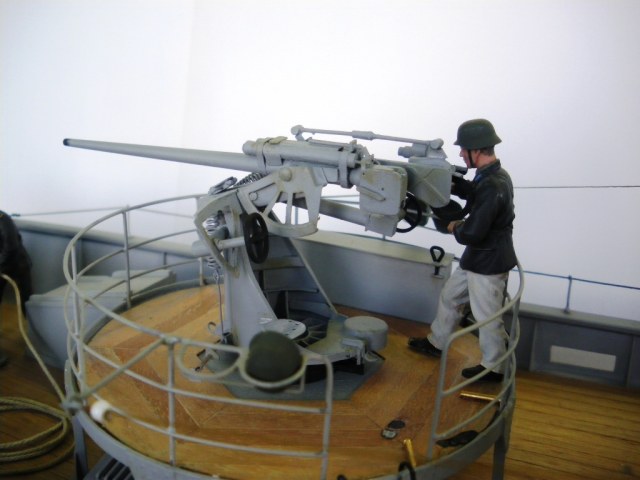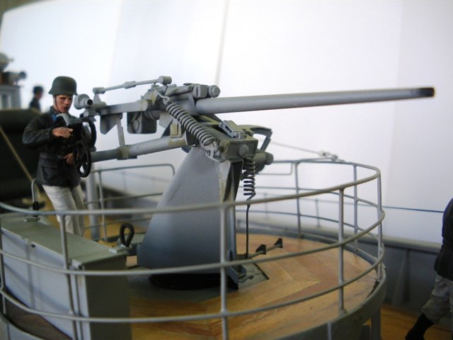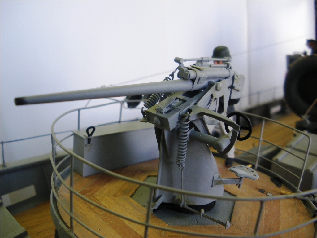 Переснять не получится: пушка намертво стоит на палубе, а модель запакована и уехала к месту соревнований, может в сентябре получится