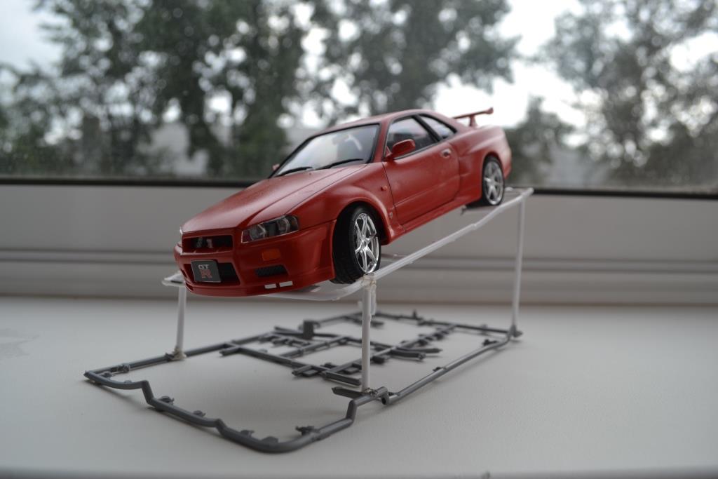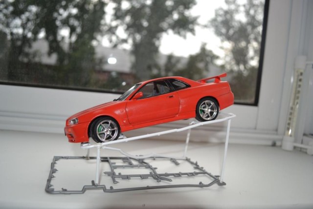 Здравствуйте, каропчане. Представляю вашему вниманию свой первый опыт в сборке моделей авто. Раньше я уже собирал модели, КВ-2, Ка-29, Армейский Хаммер, самолёт еще какой-то, не помню название, но именно собирал, за один присест. Эту же модель я считаю первым серьёзным для меня проектом. Кузов красил автоэмалью Kudo, лак этой же фирмы, чёрный матовый- Тамия, остальные краски Звезда, задние фонари и поворотники красил лаком для ногтей. Косяки по кузову конечно же есть - шагрень, кое-где ляпнул чёрной краской:(( Размещаю в песок, на галерею, думаю, не тянет. Фуух, всё вроде:)