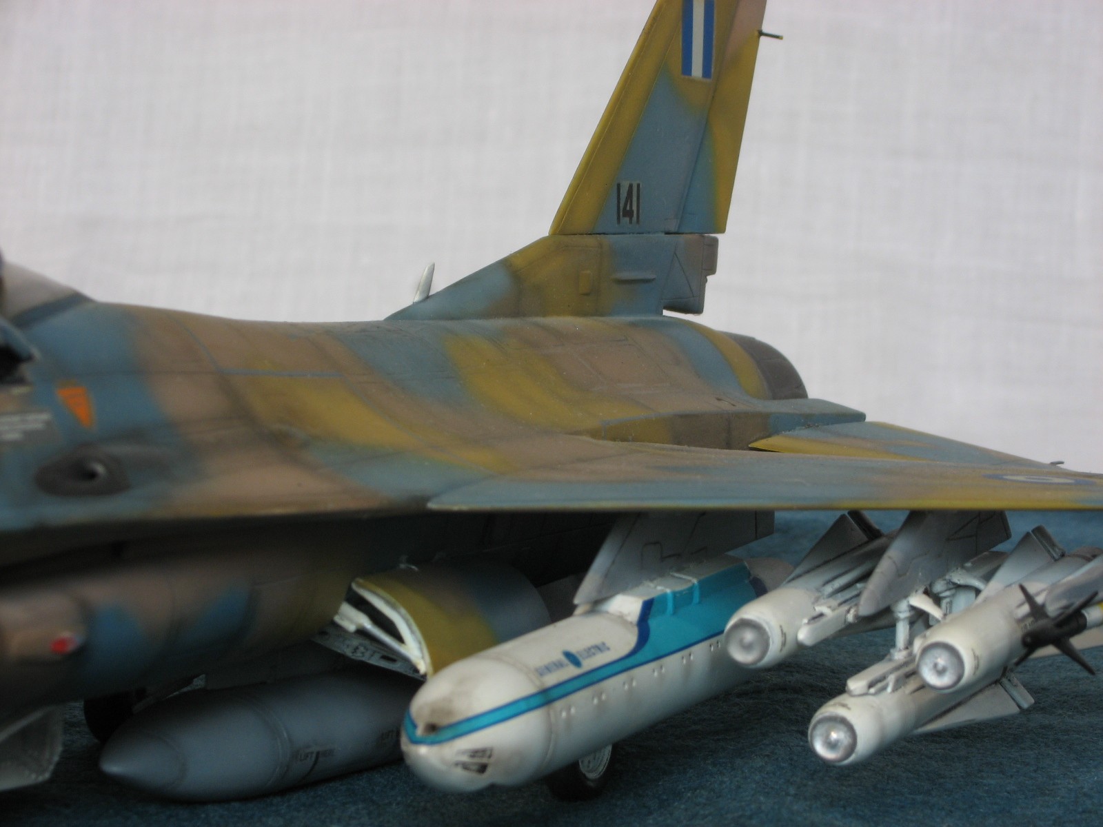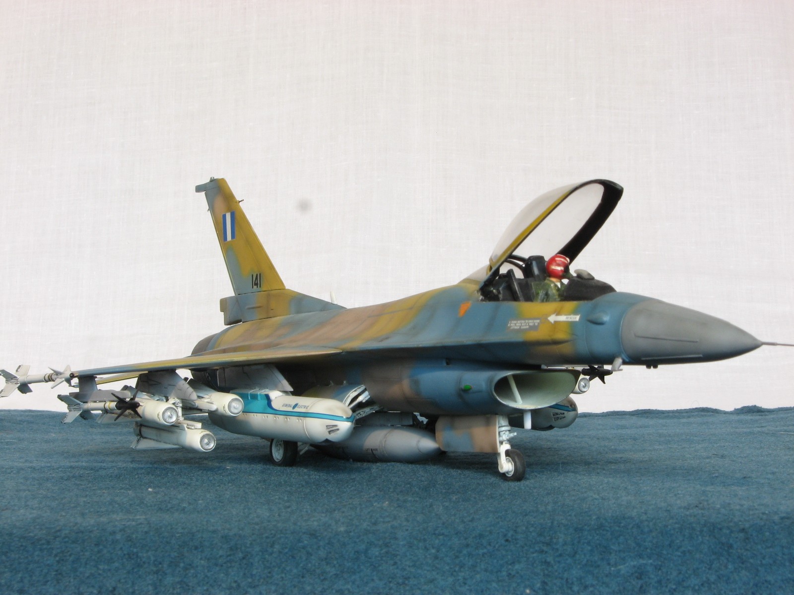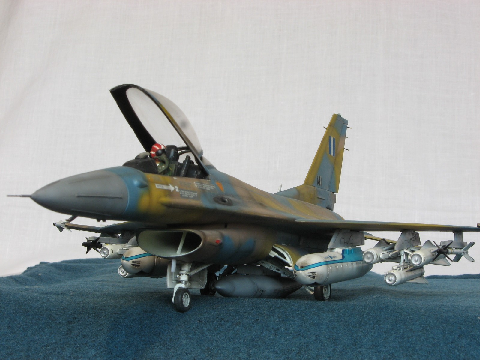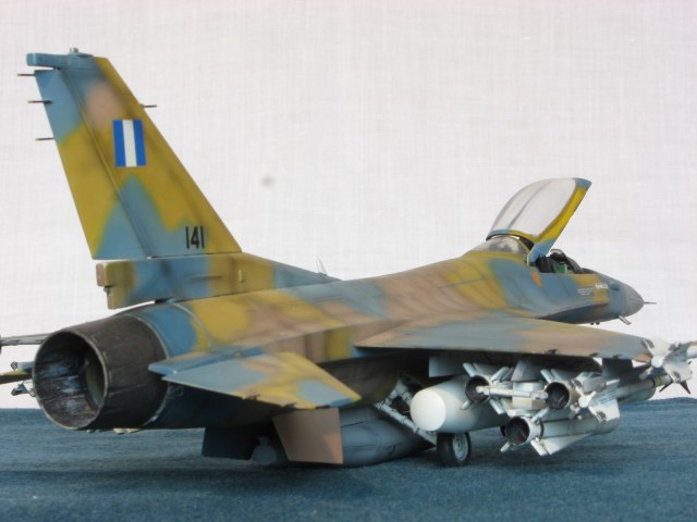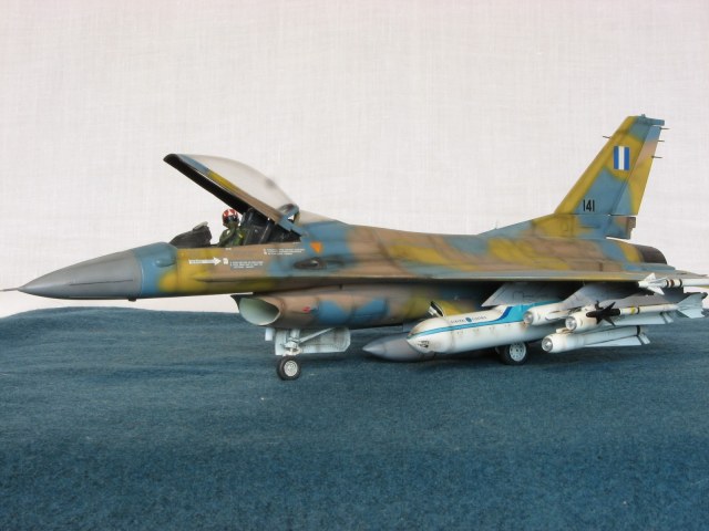 Здравствуйте уважаемые моделисты!!! Позвольте представить на ваш взгляд очередного представителя своего "ангара"- F-16C Fighting Falcon 1/48 от Academy. Кит 1695 предполагал постройку Thunderbird F-16, но как это "часто" бывает деколи были безвозвратно испорчены в процессе постройки, так что пришлось искать альтернативы. Благо у друга нашлись в закромах Италовские деки под GREEK A. F. -330 Squadron - Nea Anghilos,1994, хотя и Италвские деки не отличаются покладистым применением. По этим мотивам я и хочу представить этого "Сокола". Кит конечно слабоват по моему мнению в сравнении с другими производителями да и в добавок от меня претерпел, пока сносил прежний окрас. Одним словом досталось ему. В кабину усадил пилота чтобы скрыть огрехи "своего" интерьера. Стат. рязрядники востановил с помощью степлерных скребок. Хоть и не круглого сечения , мне так кажется особо глаз не режут. Сделал поворотный киль. ПВД-иглы.И чтобы как то вытащить модель из "небытия", нагрузил его вооружением от Хаси (С). Красил Revell, Testors, Mr. Color. Постшединг Х-19 Тами. Одним словом вот что получилось. С уважением RSHA