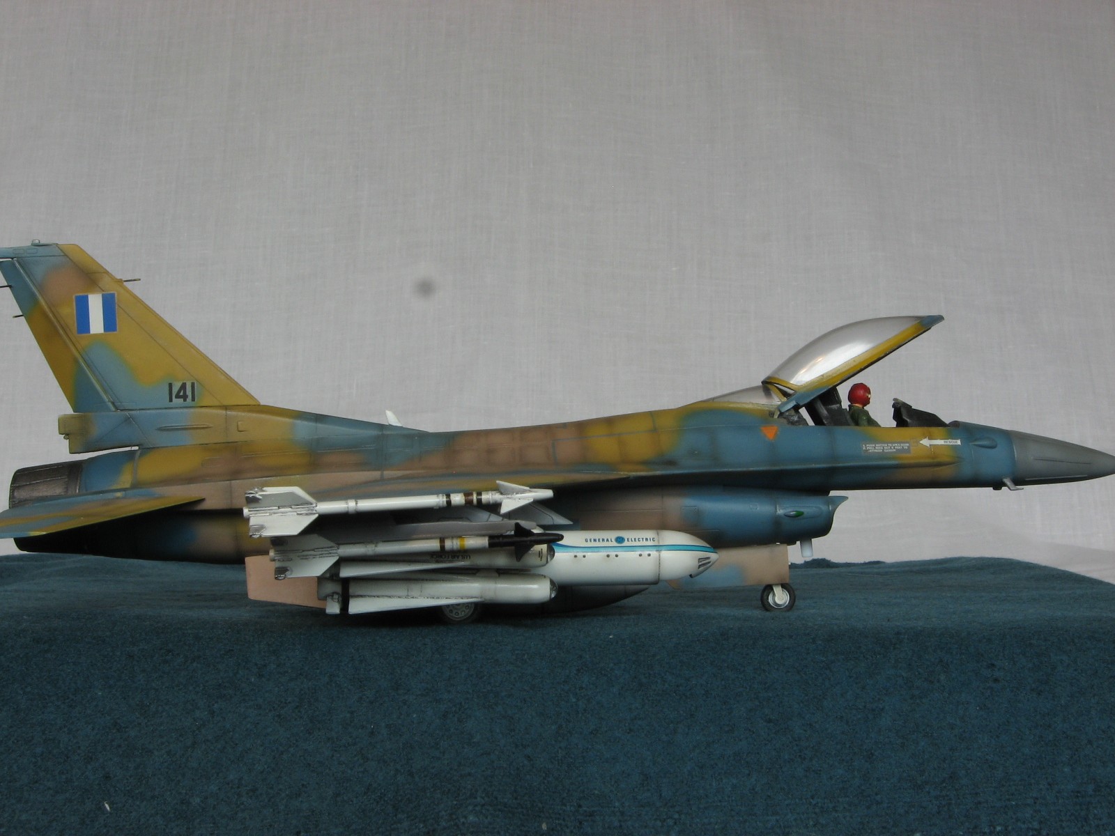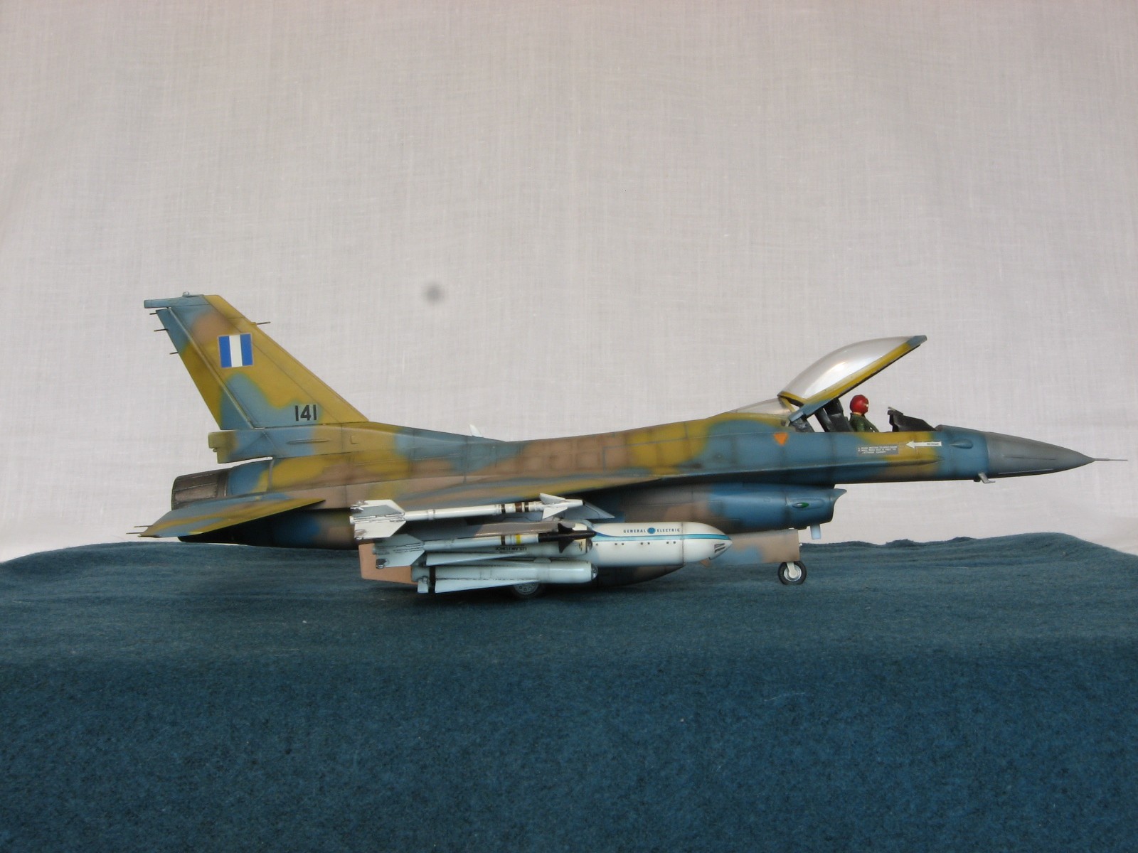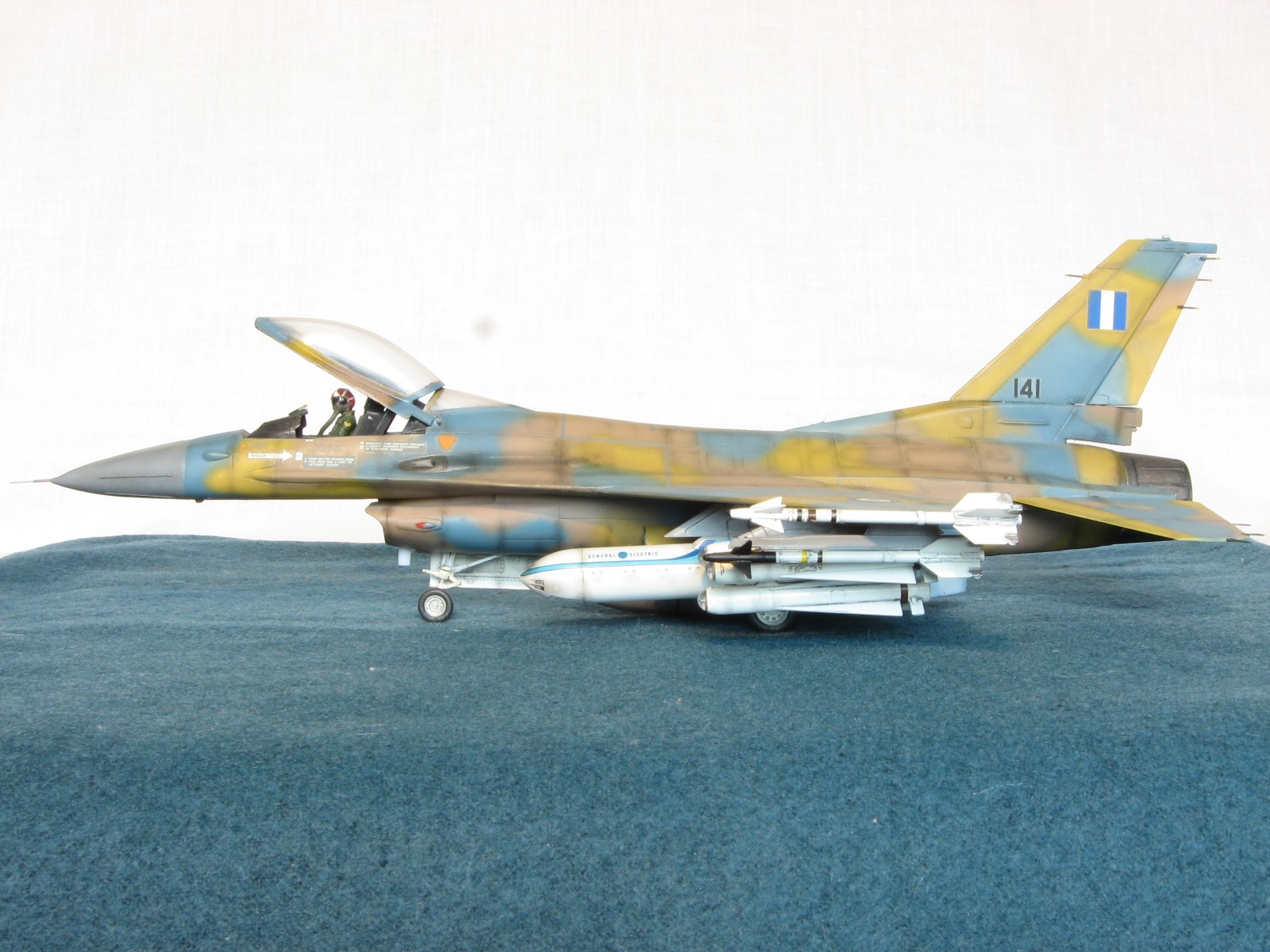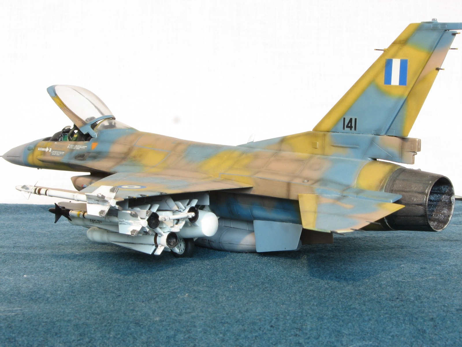 Здравствуйте уважаемые моделисты!!! Позвольте представить на ваш взгляд очередного представителя своего "ангара"- F-16C Fighting Falcon 1/48 от Academy. Кит 1695 предполагал постройку Thunderbird F-16, но как это "часто" бывает деколи были безвозвратно испорчены в процессе постройки, так что пришлось искать альтернативы. Благо у друга нашлись в закромах Италовские деки под GREEK A. F. -330 Squadron - Nea Anghilos,1994, хотя и Италвские деки не отличаются покладистым применением. По этим мотивам я и хочу представить этого "Сокола". Кит конечно слабоват по моему мнению в сравнении с другими производителями да и в добавок от меня претерпел, пока сносил прежний окрас. Одним словом досталось ему. В кабину усадил пилота чтобы скрыть огрехи "своего" интерьера. Стат. рязрядники востановил с помощью степлерных скребок. Хоть и не круглого сечения , мне так кажется особо глаз не режут. Сделал поворотный киль. ПВД-иглы.И чтобы как то вытащить модель из "небытия", нагрузил его вооружением от Хаси (С). Красил Revell, Testors, Mr. Color. Постшединг Х-19 Тами. Одним словом вот что получилось. С уважением RSHA