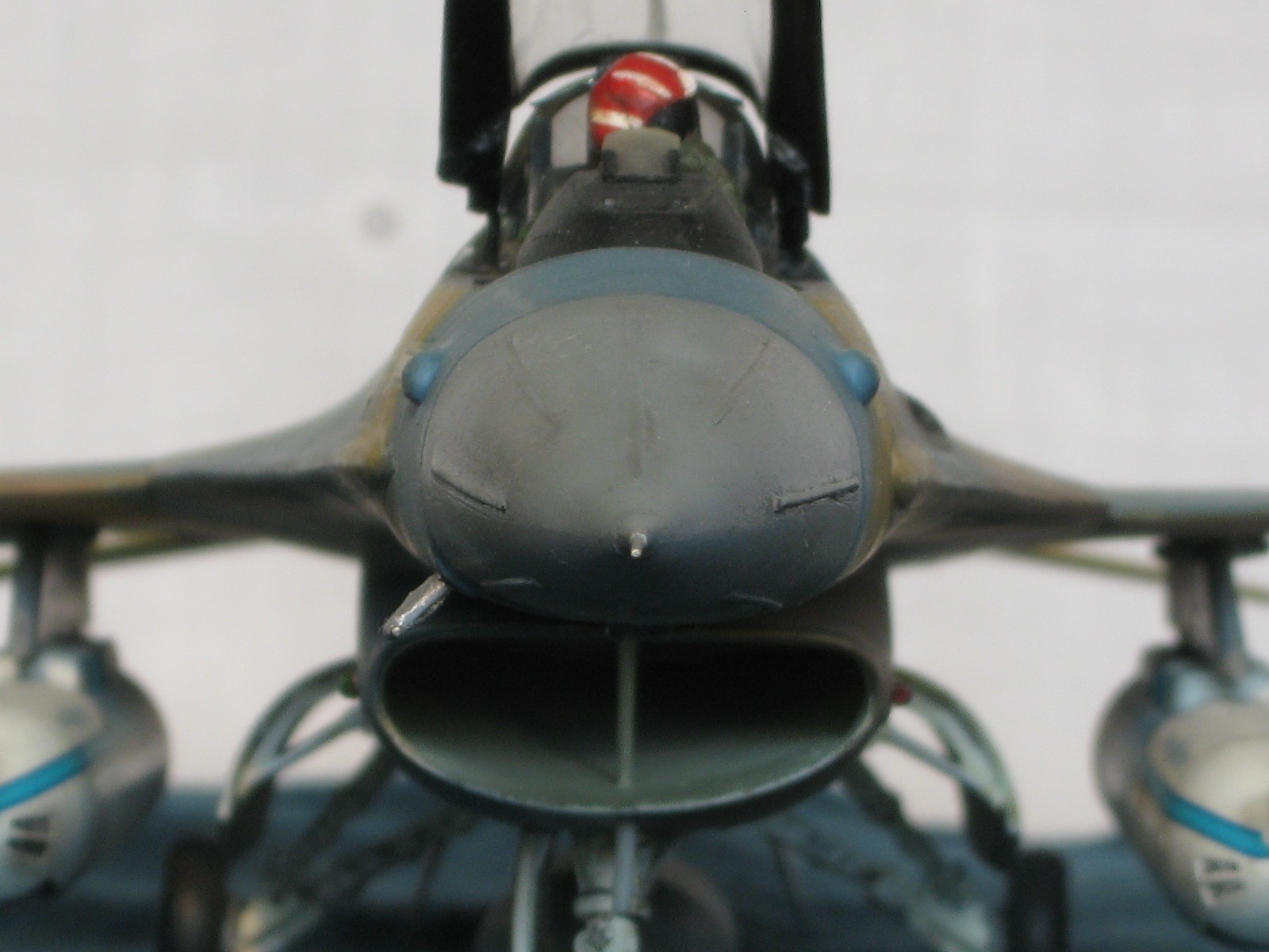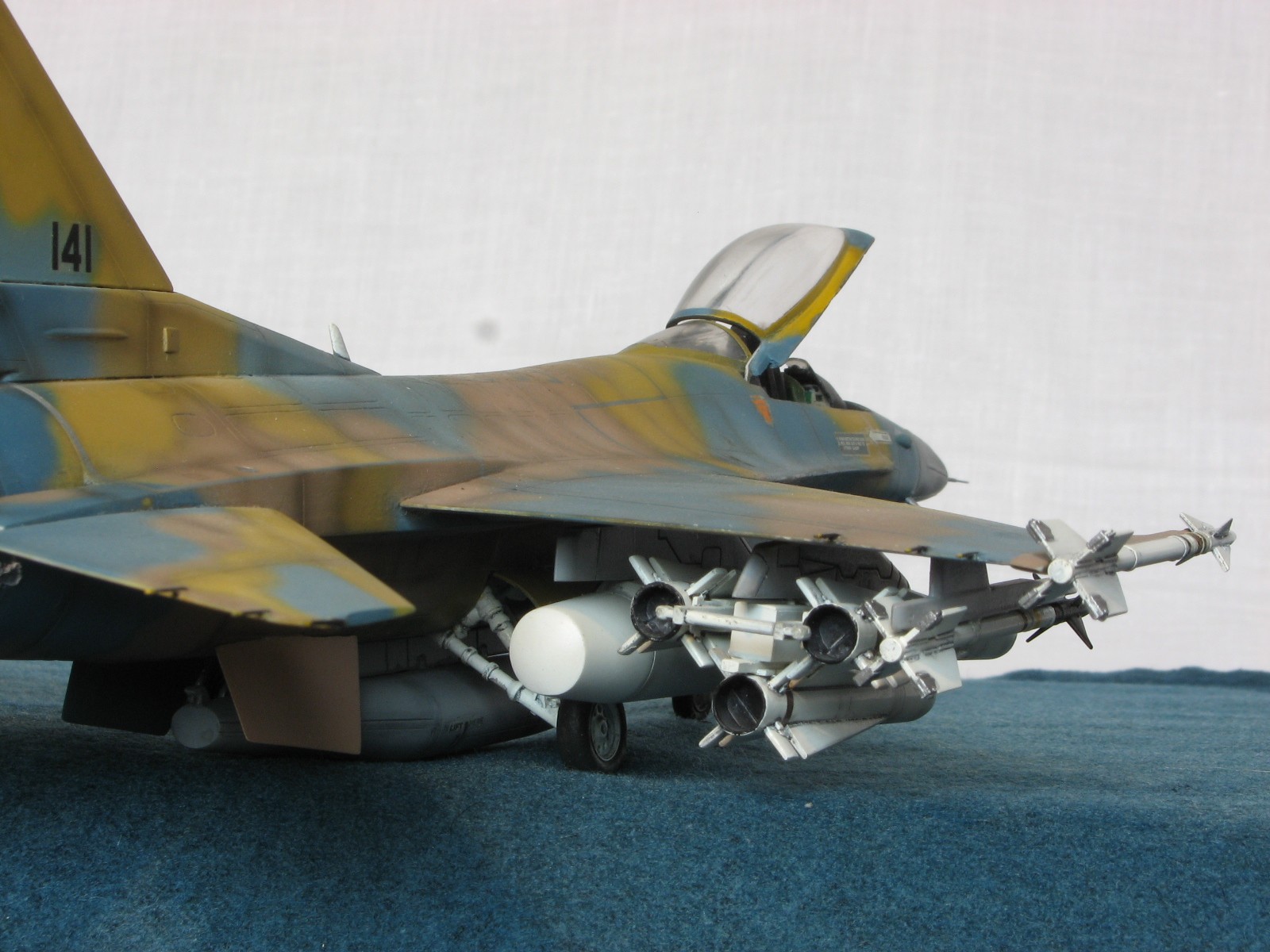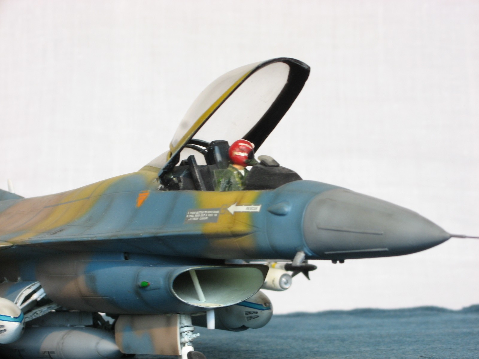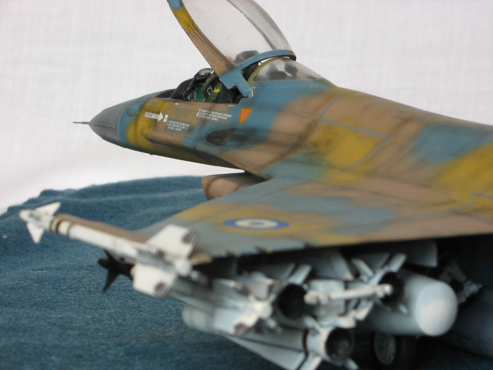 Здравствуйте уважаемые моделисты!!! Позвольте представить на ваш взгляд очередного представителя своего "ангара"- F-16C Fighting Falcon 1/48 от Academy. Кит 1695 предполагал постройку Thunderbird F-16, но как это "часто" бывает деколи были безвозвратно испорчены в процессе постройки, так что пришлось искать альтернативы. Благо у друга нашлись в закромах Италовские деки под GREEK A. F. -330 Squadron - Nea Anghilos,1994, хотя и Италвские деки не отличаются покладистым применением. По этим мотивам я и хочу представить этого "Сокола". Кит конечно слабоват по моему мнению в сравнении с другими производителями да и в добавок от меня претерпел, пока сносил прежний окрас. Одним словом досталось ему. В кабину усадил пилота чтобы скрыть огрехи "своего" интерьера. Стат. рязрядники востановил с помощью степлерных скребок. Хоть и не круглого сечения , мне так кажется особо глаз не режут. Сделал поворотный киль. ПВД-иглы.И чтобы как то вытащить модель из "небытия", нагрузил его вооружением от Хаси (С). Красил Revell, Testors, Mr. Color. Постшединг Х-19 Тами. Одним словом вот что получилось. С уважением RSHA