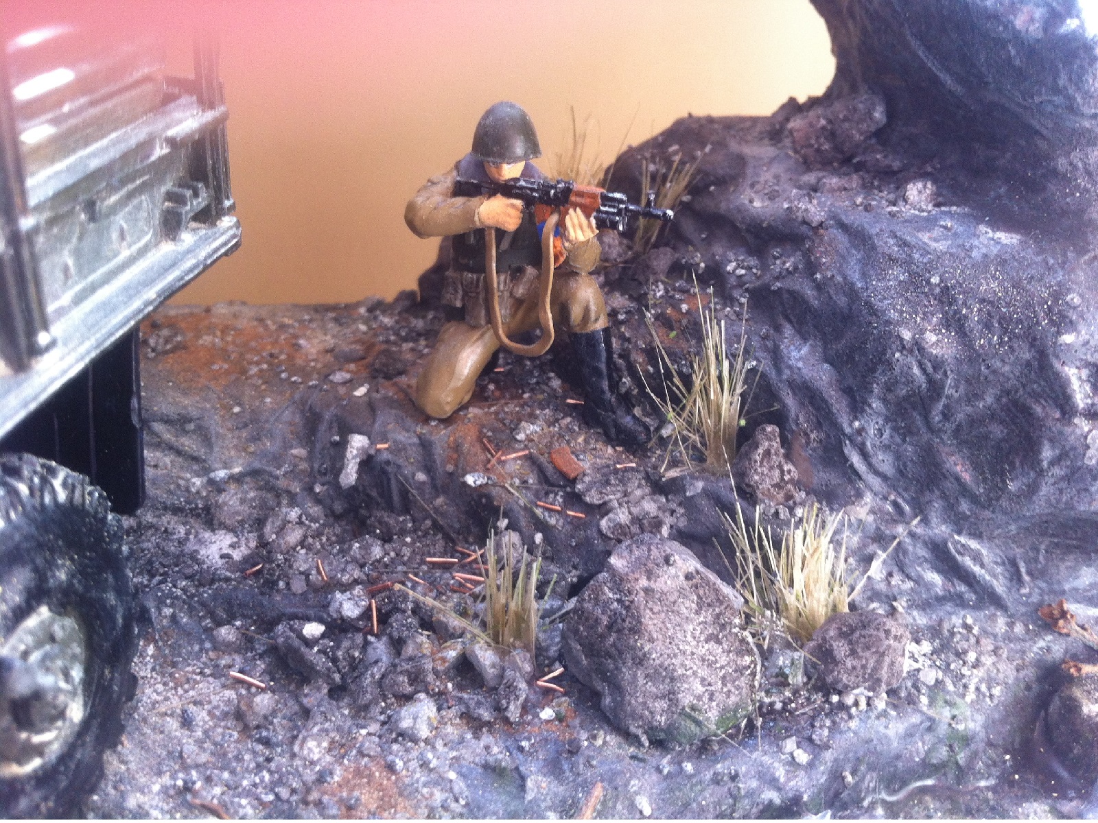 задумка хорошая и исполнение, вроде, не плохо, но фотки... не ужели диорама сама такая тёмная?