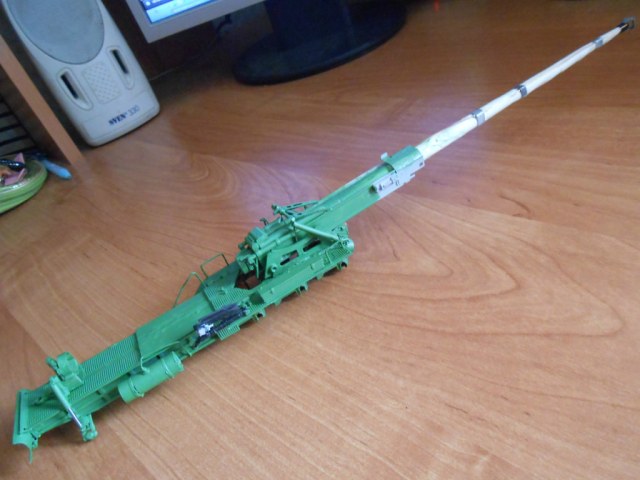собирал из лишних деталей,ствол из стального прута 3-4 ⌀мм. обмотанный бумажным скотчем,колеса от КамАЗа в м1\43 или 48 не помню...