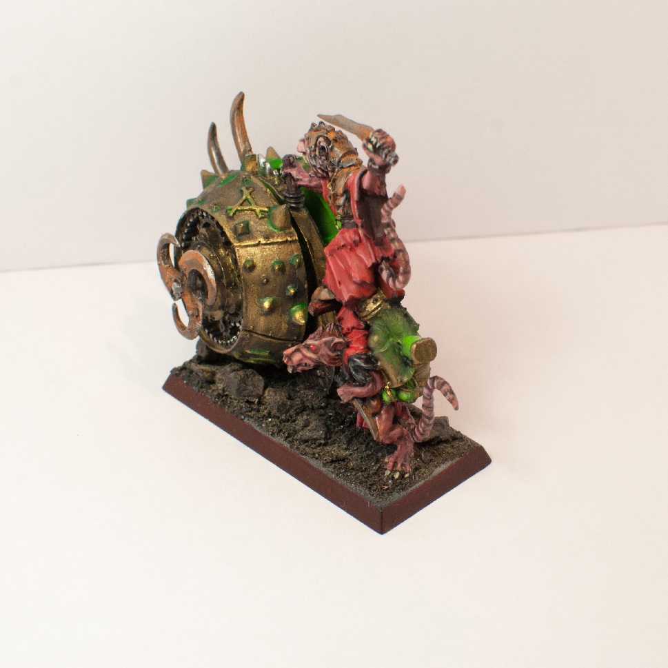 Данный экземпляр чудо инженерной мысли скавенов, был разработан специально для борьбы с гномами, как в маленьких тоннелях разрывая на куски зазевавшихся рудокопов, так и в больших холлах пробивая проходы в хирдах гномов для штурмовиков скавенов. Так же хочу заметить, что применение данного механизма не ограничилось подземным-подгорными мирами. Ее применяли и на поверхности. Чего стоит только вторжение скавенов в имперский город Нульн! От туда и закрепилось за ней прозвище имперцев "свежеватель" Изначально механизм приводился в движение силами расчета. Потом эволюционировал. Скавены прикрутили сердце-мотор для данного механизма. Варп-камень!!!! Машина стала универсальней и смертоносней.