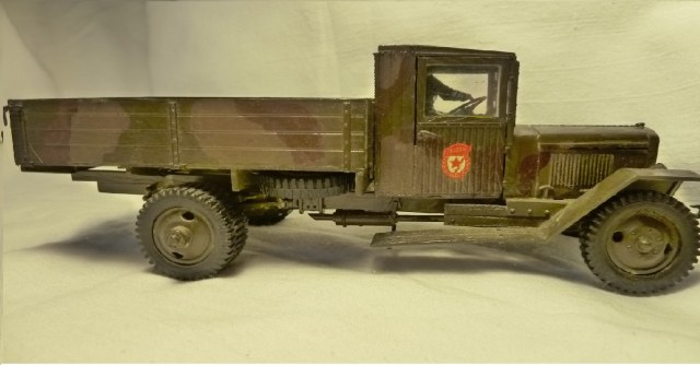 В общем, решил показать свой ЗИС, правда, выставляю его больше для истории. С той поры он запылился, краска кое-где поотбивалась. Хочу попросить у благородного собрания совета: как лучше переделать фары (На фото видно, что фары в плохом состоянии, так как постоянно ломались), что нужно исправить в окраске и какие косяки по матчасти нужно исправить? И, конечно же, с нетерпением и большим волнением жду разумной критики, хотя особо прошу не ругать, всё-таки делал модель в детстве. Делать какие-либо кардинальные изменения модели в дальнейшем не буду, хочу оставить её в первозданном виде, для истории ( хотя матчасть всё-таки доработаю). В диорамах использовать тоже не буду. На днях закажу для грузовика стеклянную полочку.
