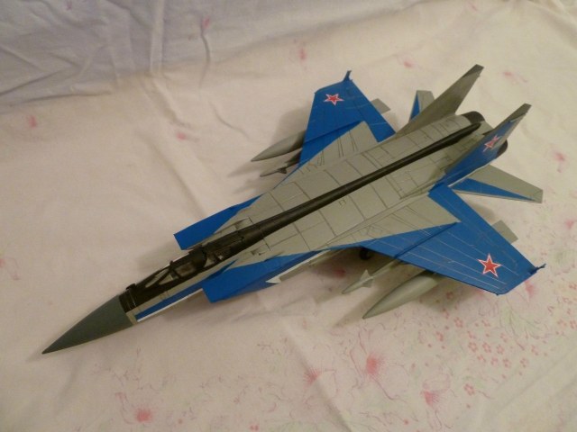 По сборке вроде неплохо, по покраске огрехи Владимир уже отметил. По матчасти - где ПВД? (тот, что из носа торчать должен) А что за чудные наросты на законцовках крыла? Что-то я таких не припомню, или я что-то пропустил? ПТБ (баки) на 31-х не используются. Ракеты Р-40 в монотонном сером исполнении не встречаются, если это МГМ (массо-габаритный макет) то они обычно белые.