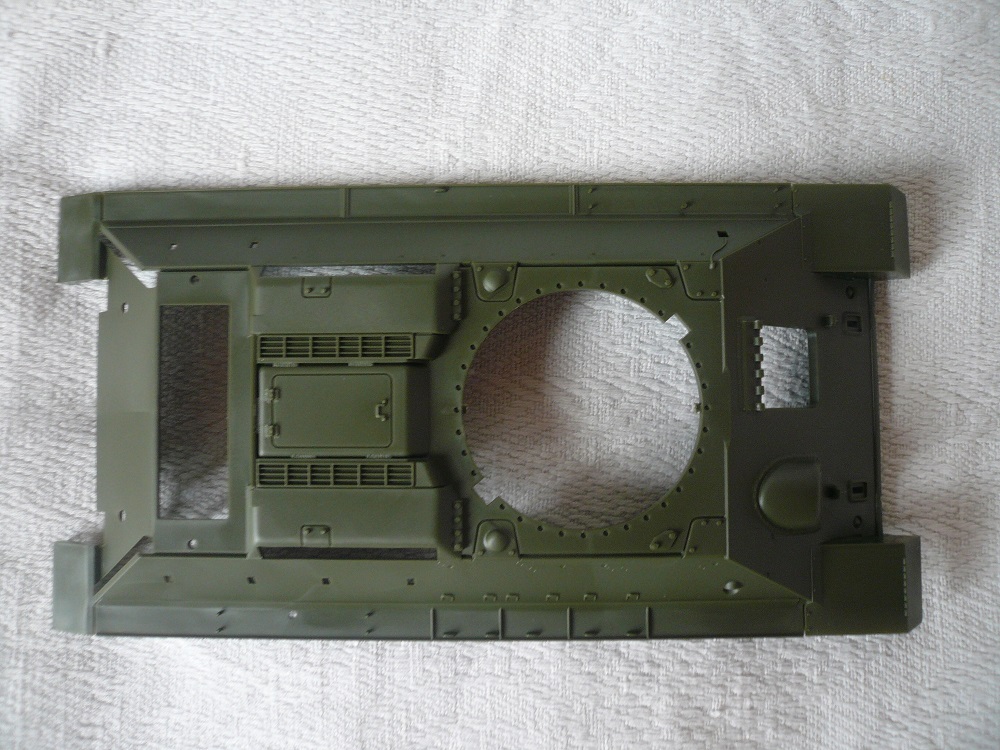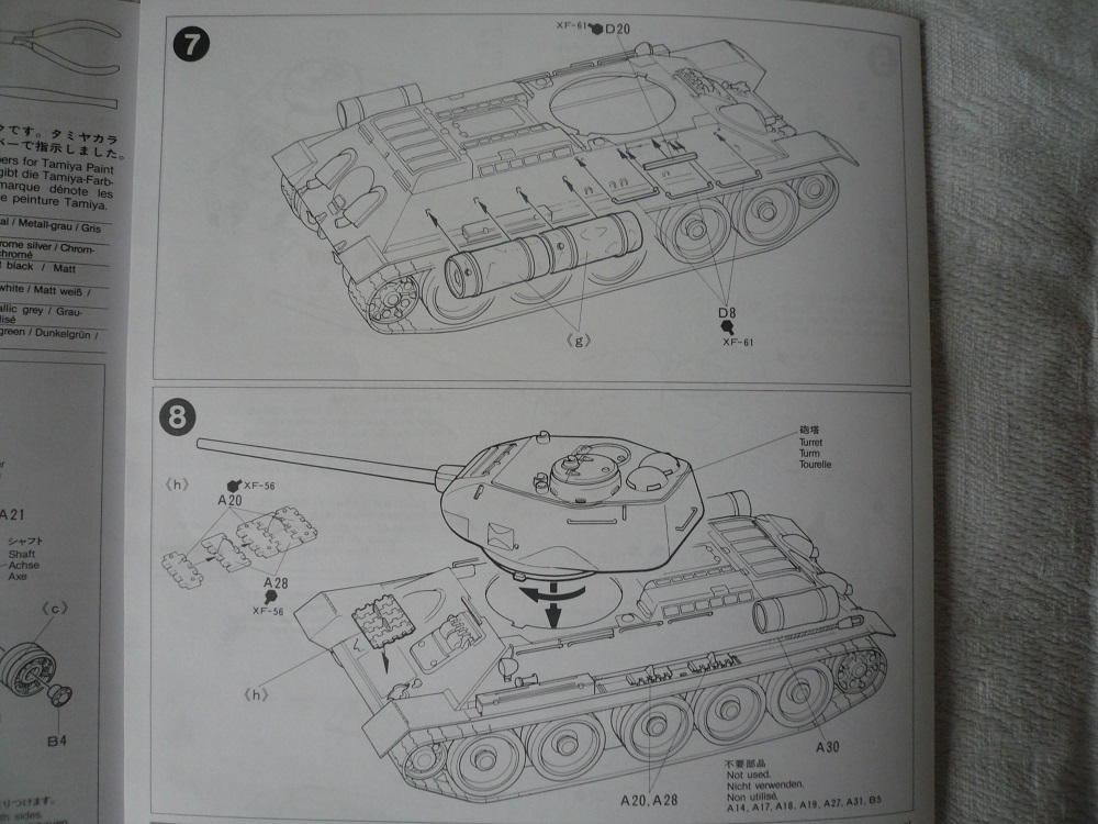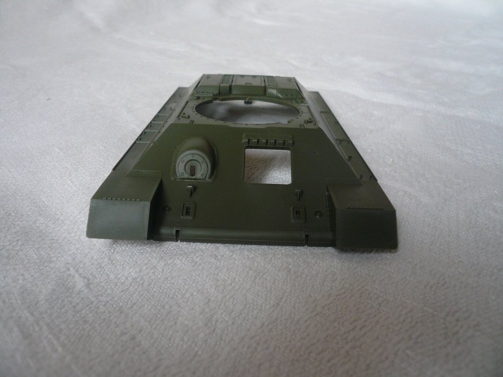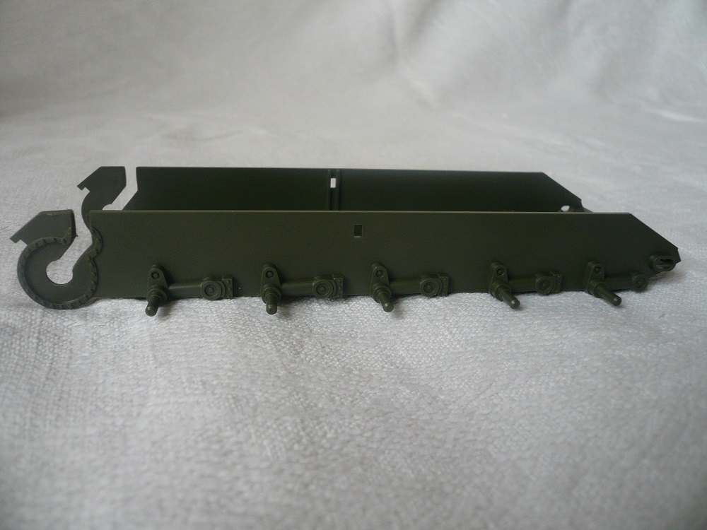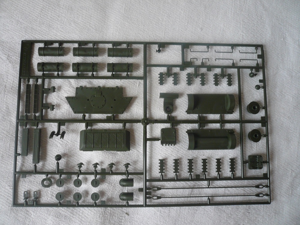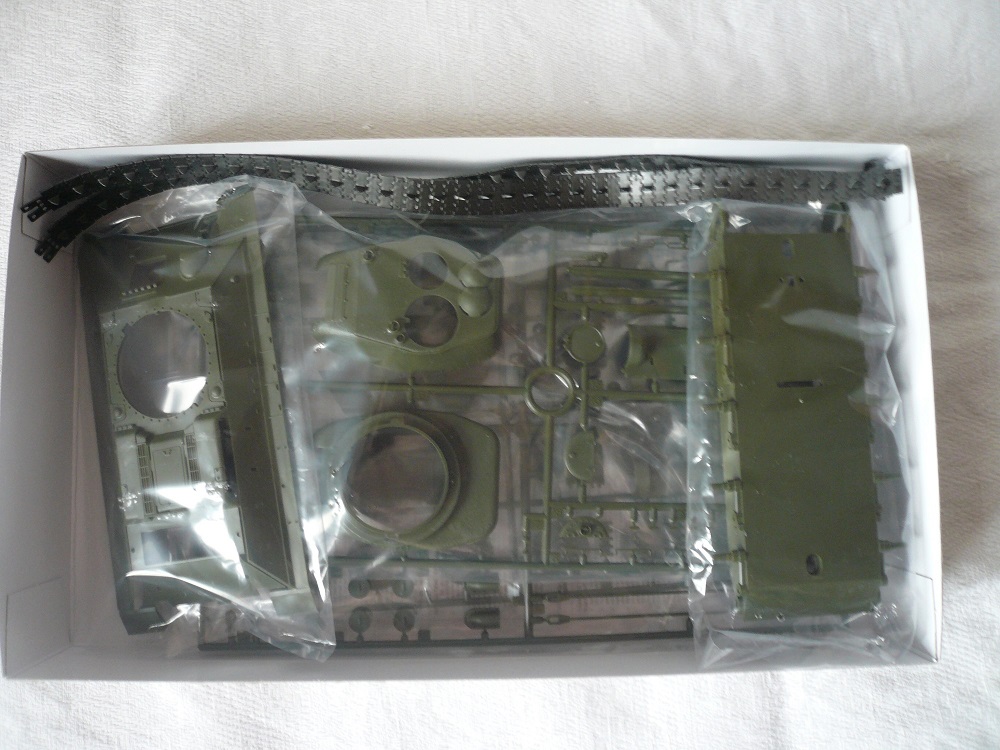 У самого такой на полке стоит, так что советую красить"лембиту" (т.е. белым). И со стыковкой башенных полвинок придётся повозиться, для оптимального результата, особено на "щеках". У гусей провиса не будет, ибо они натягиваются при установке как гитарные струны, я эту проблему решил приклеив гусь к первому и последнему катку. Но "ступеньчатую" форму траки теряют.