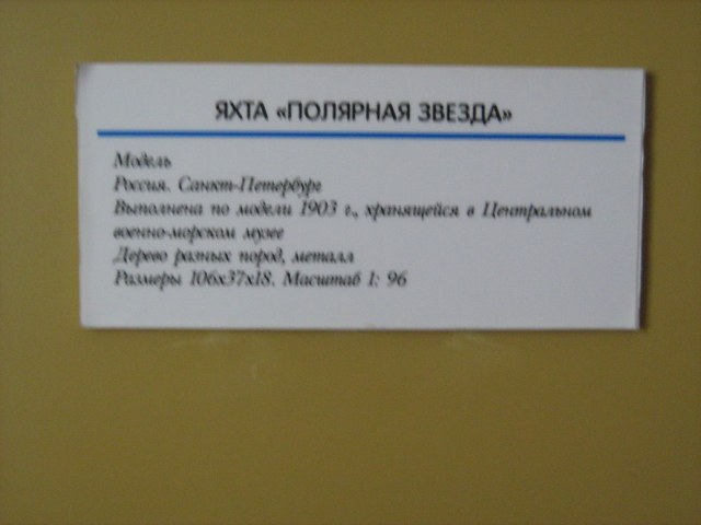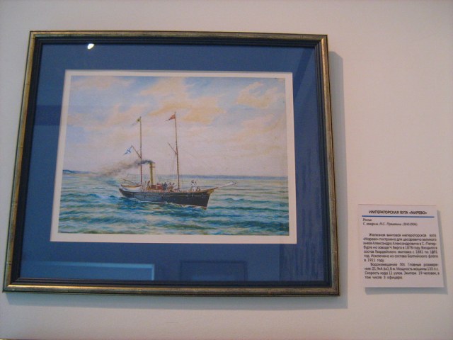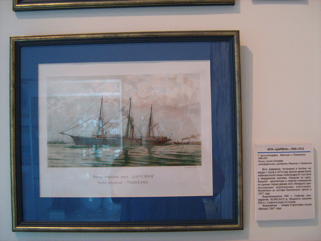 В музее представлены уникальные предметы «морского» обихода, такие как яхтенные сервизы, а так же изображения, фотографии и модели яхт, которые были настоящими «плавающими императорскими резиденциями».
