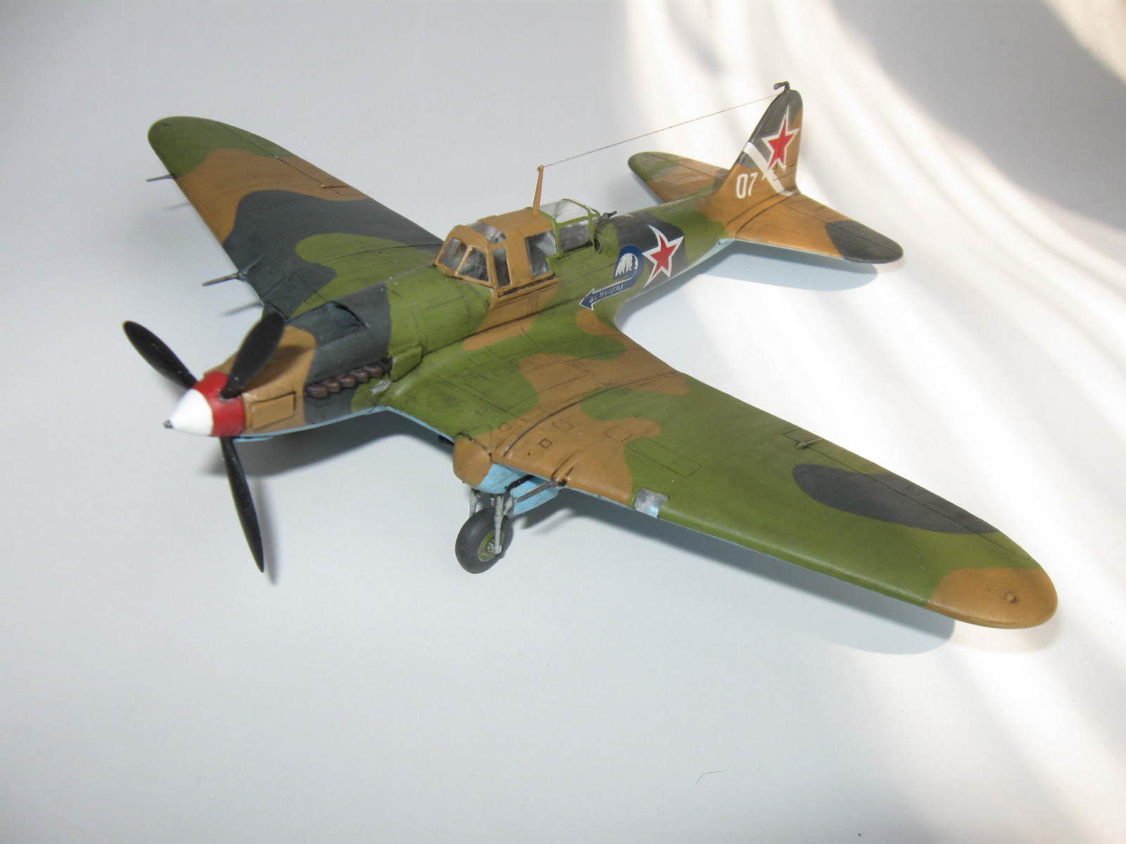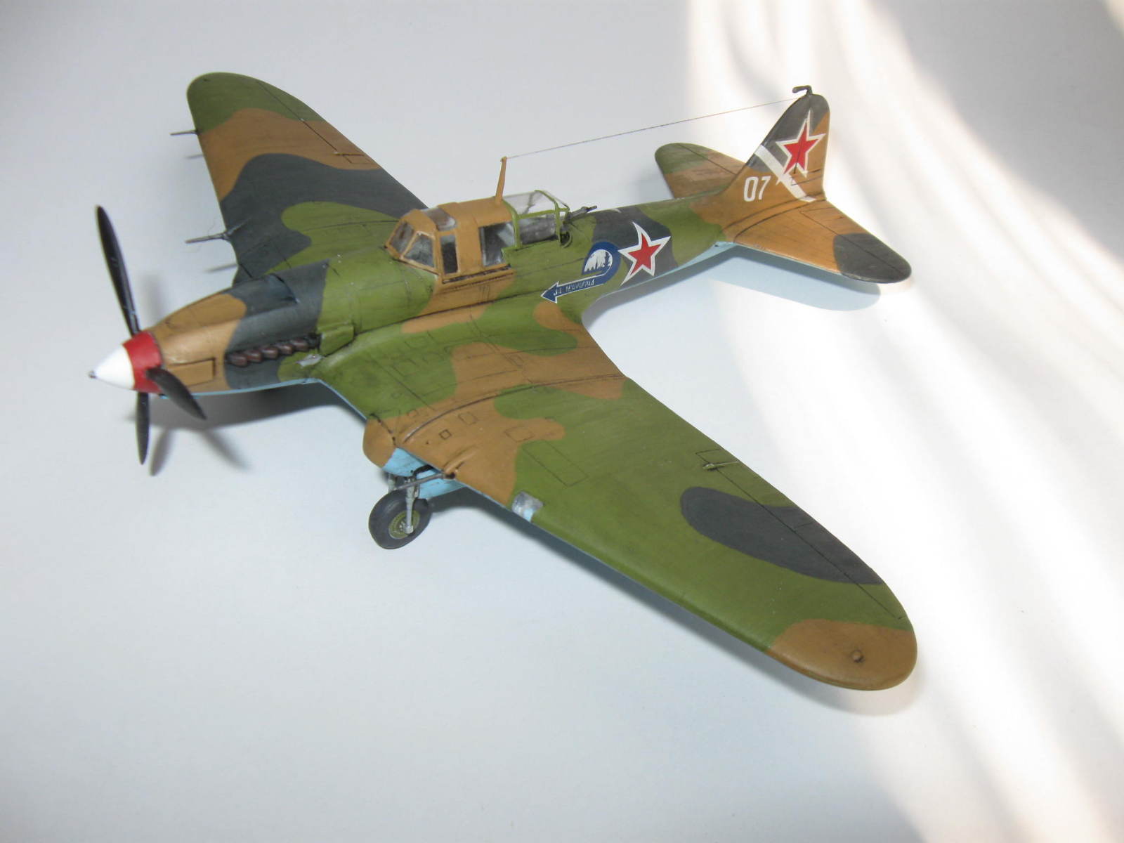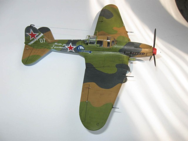 Как для кисти,то неплохо,переплёт надо докрасить.Звездовские Илы собираются получше чем Дако\Моделист\Восточный Экспресс,но проигрывают в копийности и деталировке,Академ делает только ранний одноместный Ил с металлическим крылом и фюзеляжем(очень неплох),Тамия отдаунскейлила свой Ил-2М3 в 48 до 72 го,ну Тамия и есть Тамия ,лучший наверное Ил-2(где то тут на Каропке видел его обзор)