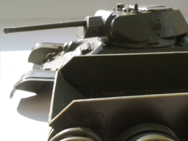Хай! Короче то что я заметил: Это шов на маске орудия, но он скорее всего после покраски в глаза не бросится, по-моему не зачищены заусенцы по краям на крышке с сеткой над МТО, вроде клей немного вылез по периметроу заднего листа моторного, про стык на башне ты и сам заметил, и самый ужас по-моему: маска орудия должна уходить под верхний лист башни, а она как будто над ним. Вот