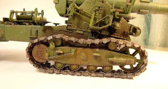 А вообще - хорошо получилось. От ток провис гусянки уж слишком сильный. Один-бы трак убрать, и будет ОК!