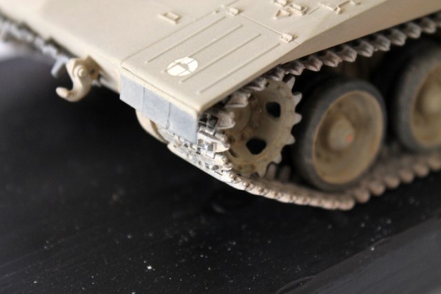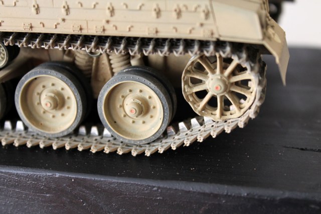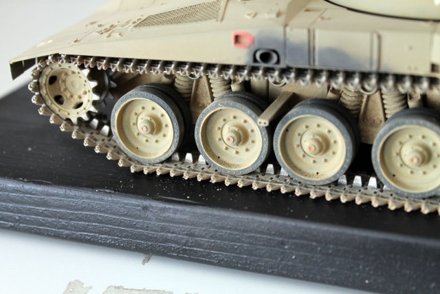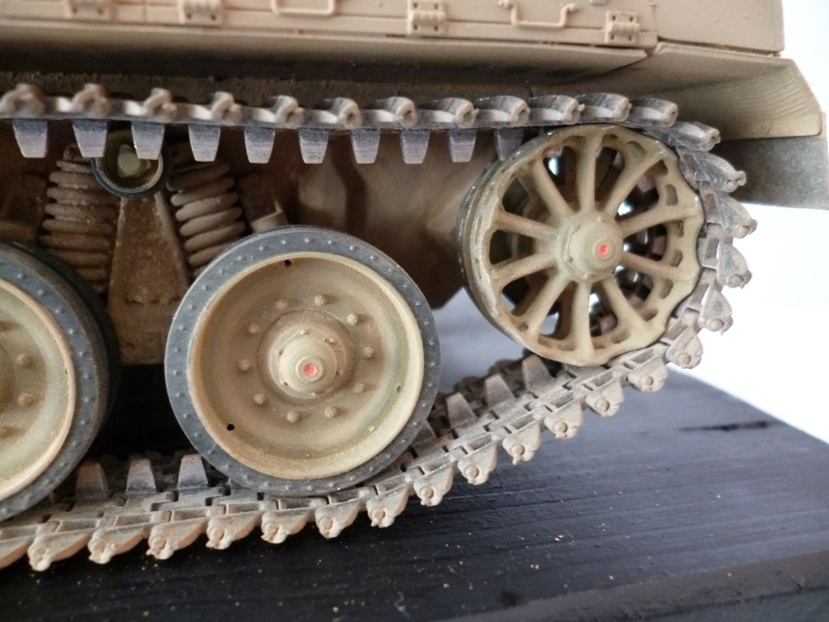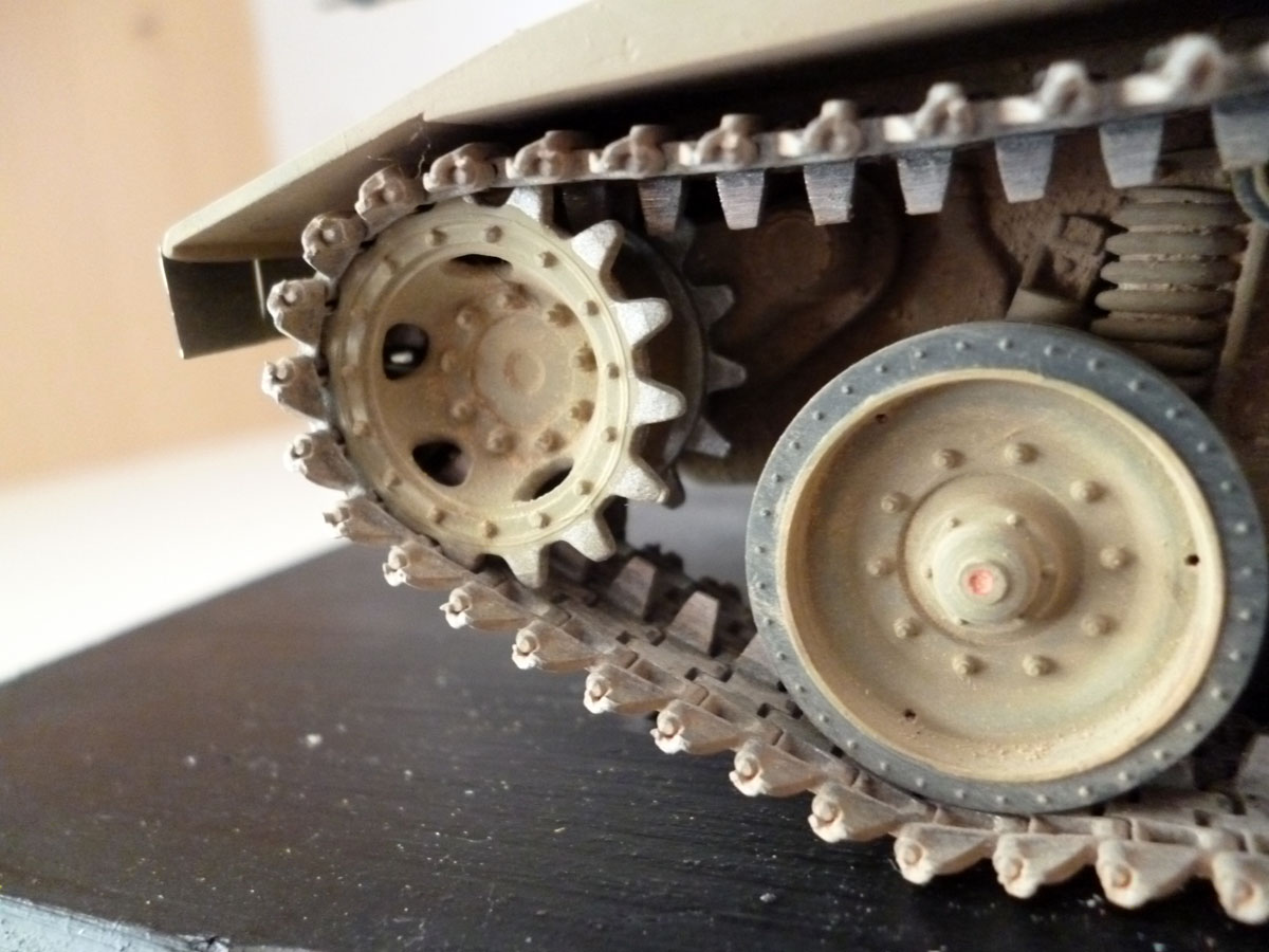 Модель хороша, но не хватает тонировки швов, гребни траков наверное должны быть блестящими несмотря на пыль...