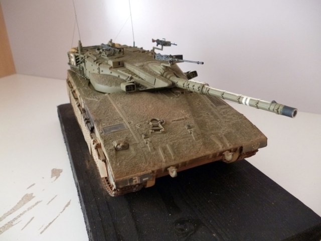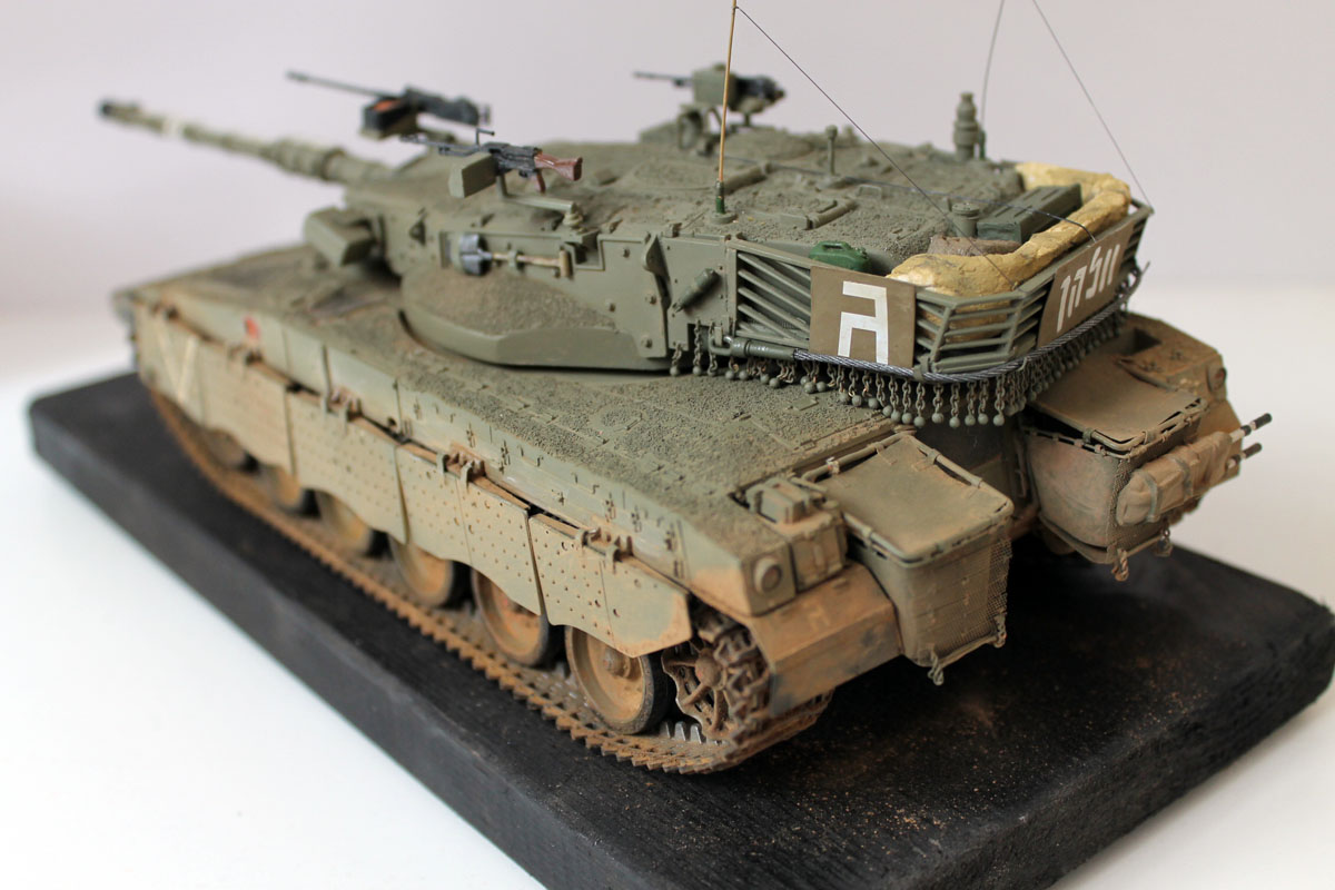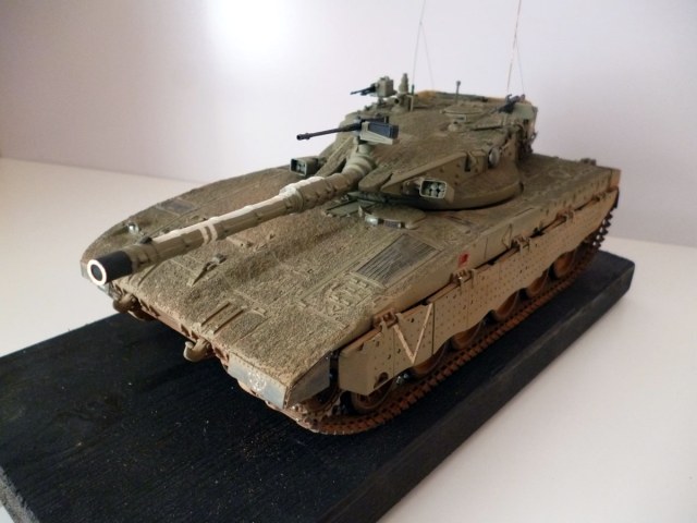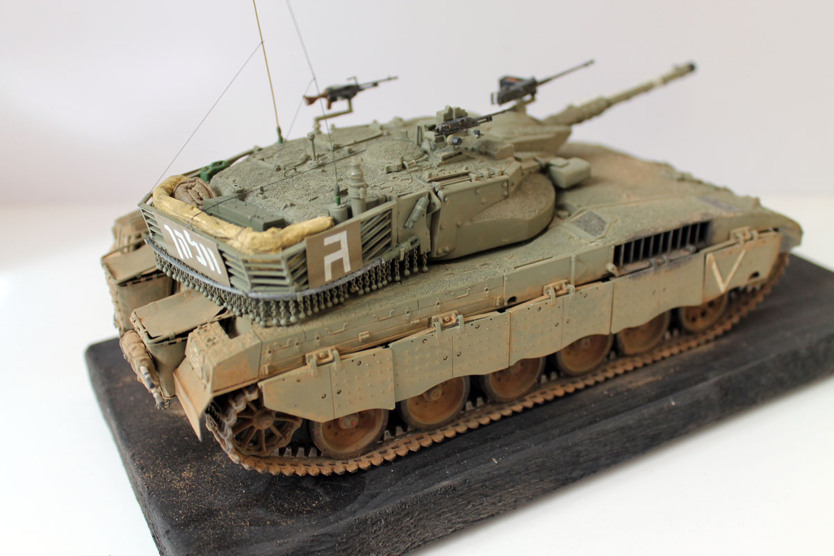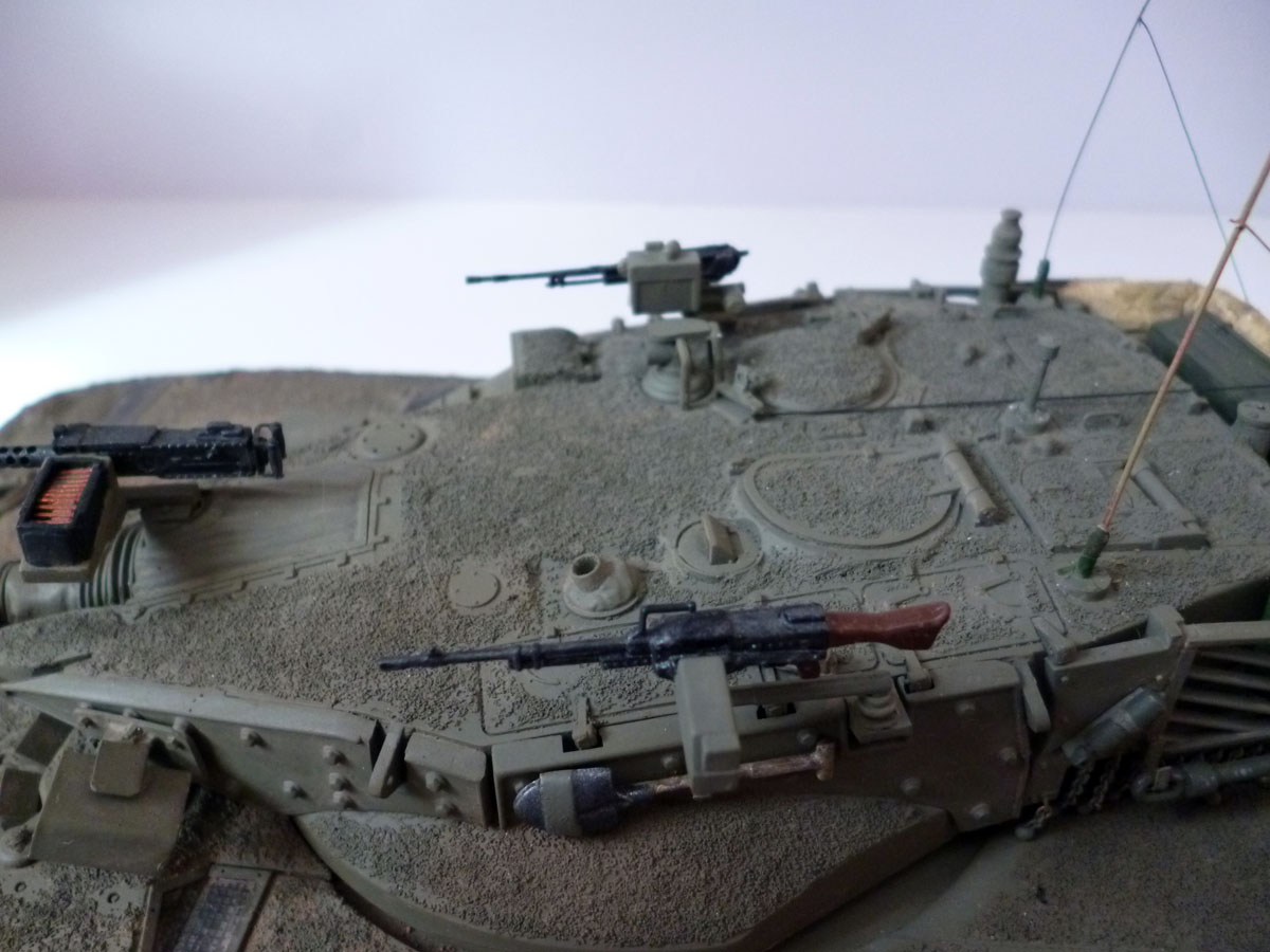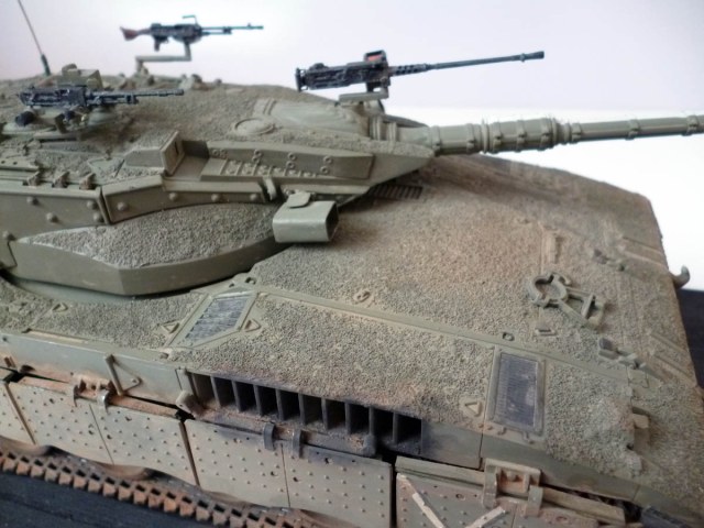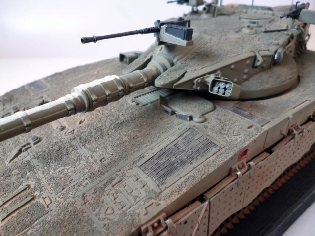 Ну вот Меркава на летних Голанах, судя по выжженной жёлтой траве на заднем плане. Даже МАГ на крупном плане припорошен тёмно-коричневой пылью.