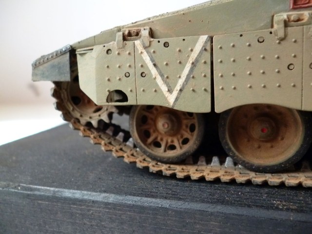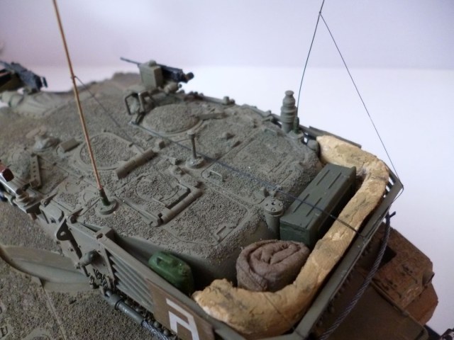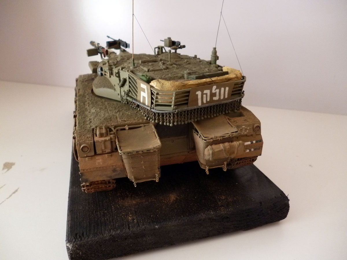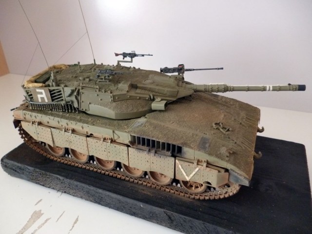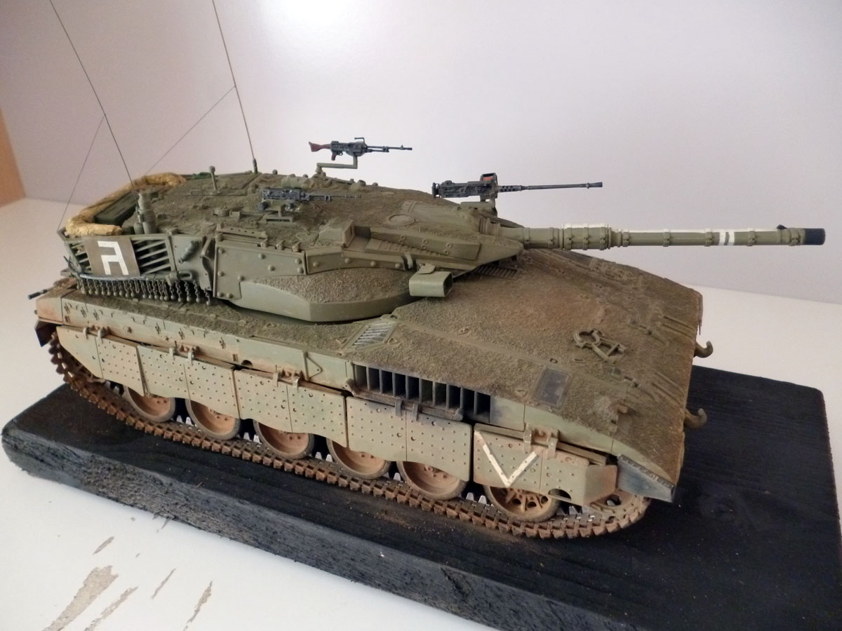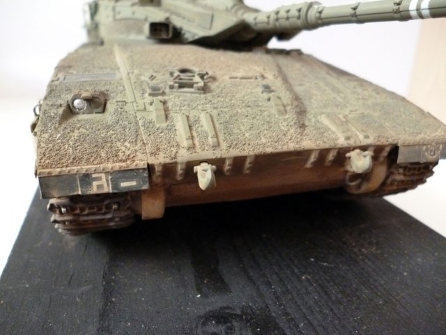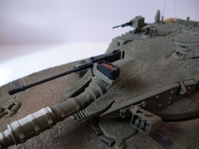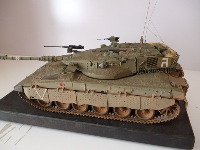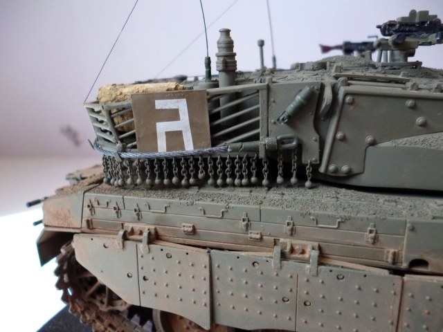 Ну вот Меркава на летних Голанах, судя по выжженной жёлтой траве на заднем плане. Даже МАГ на крупном плане припорошен тёмно-коричневой пылью.