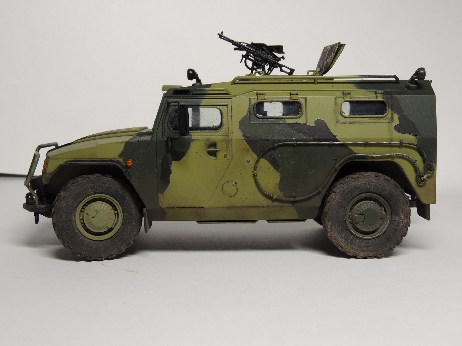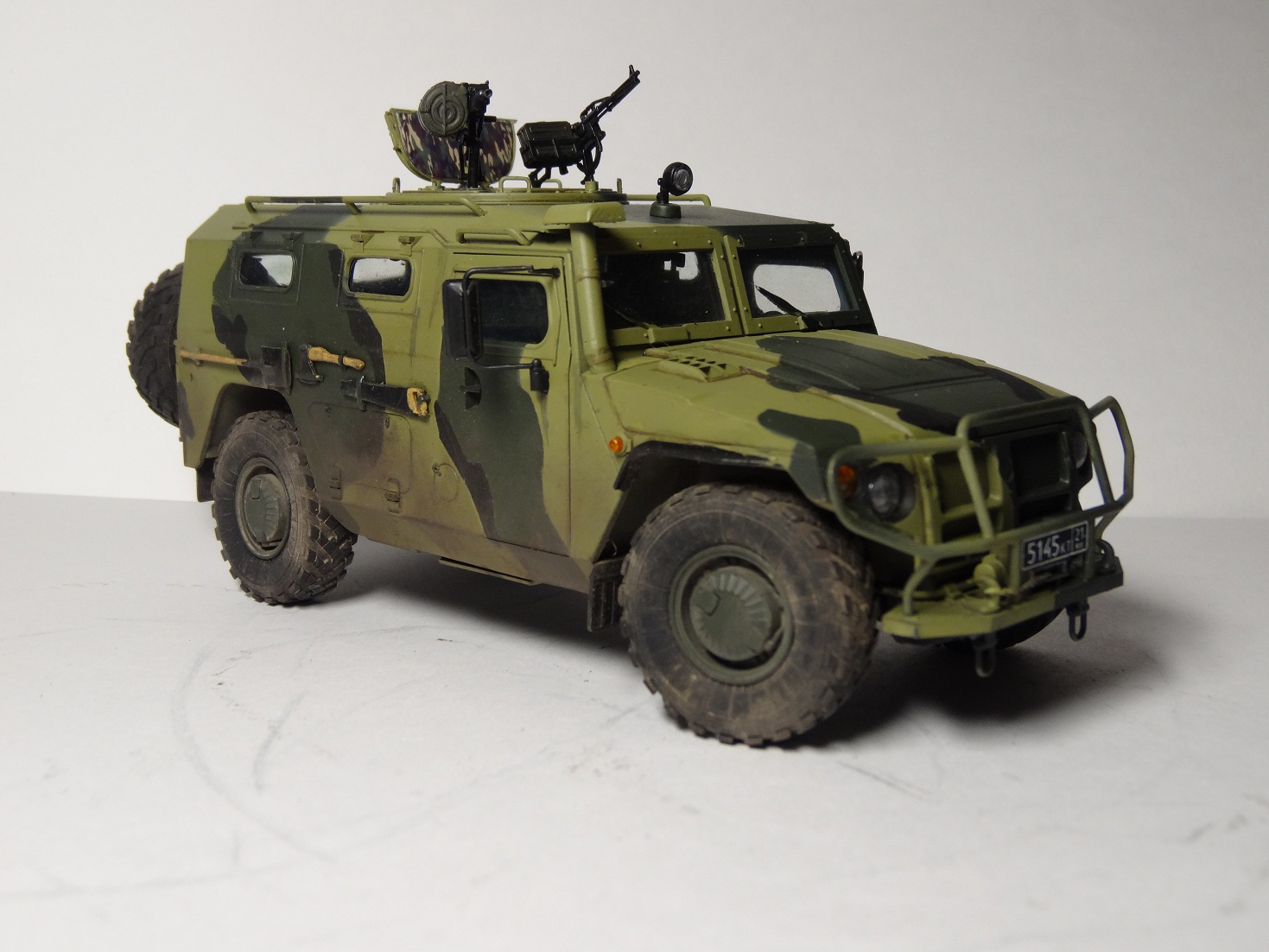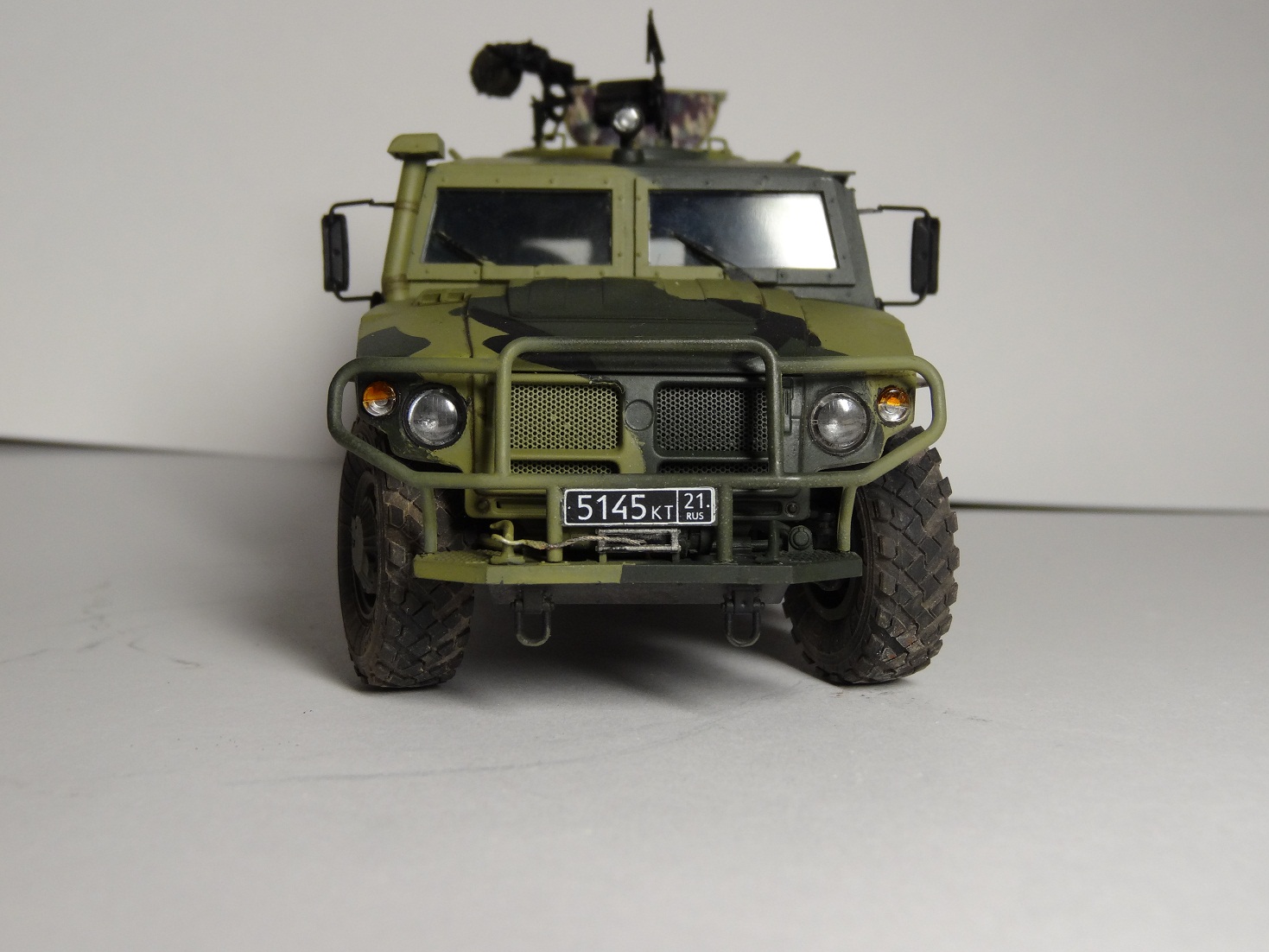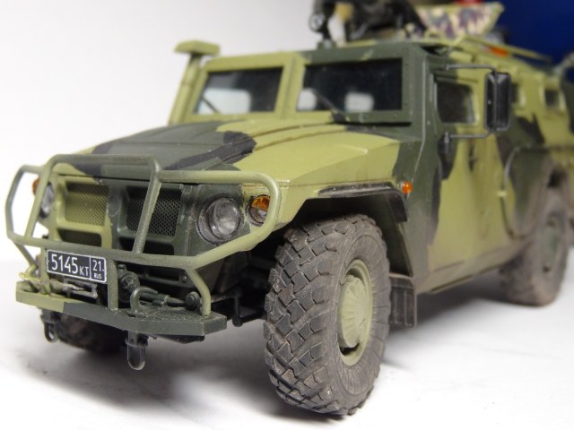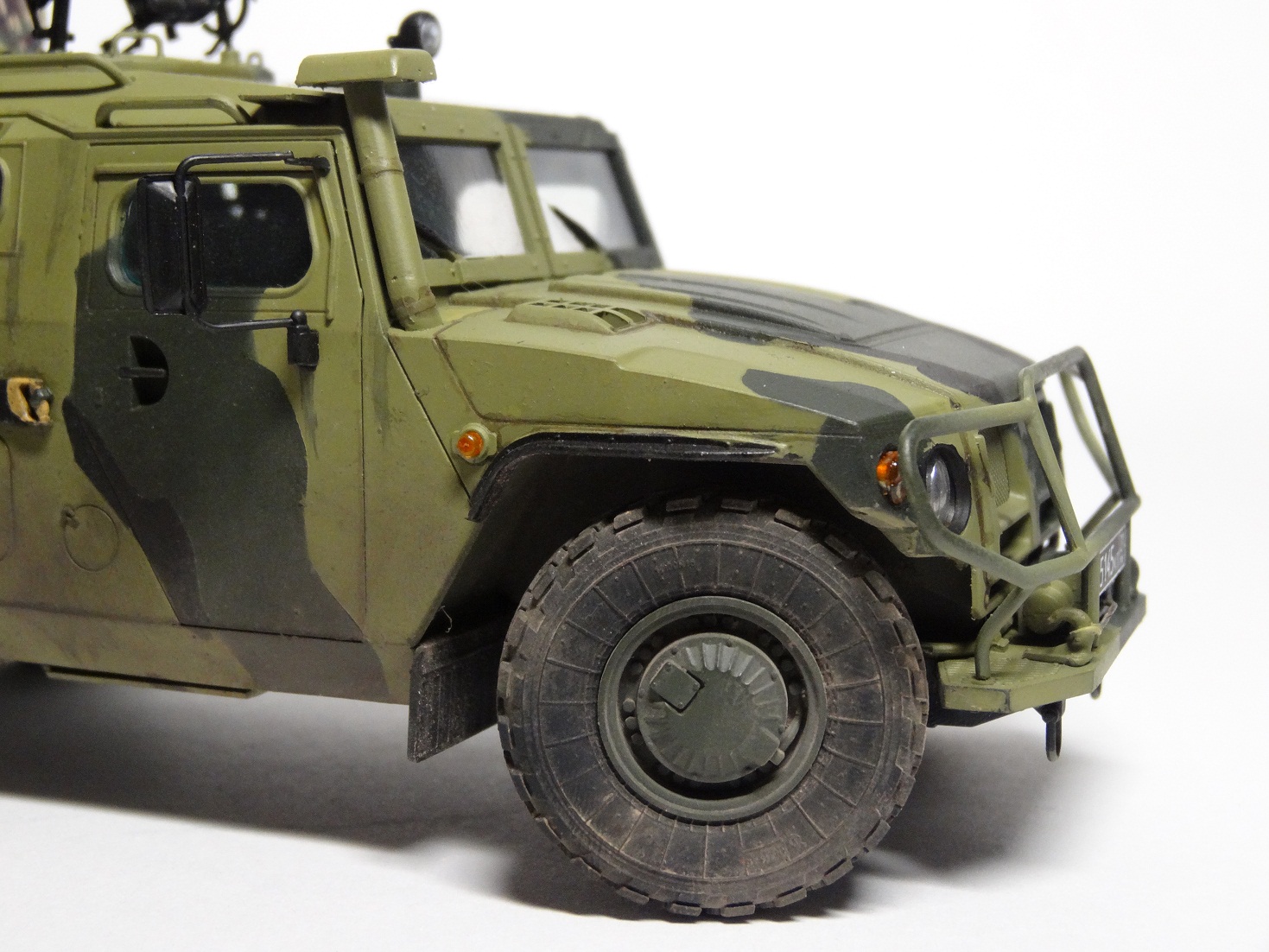 Хорошая модель, сам над такой сейчас вожусь.Камуфляж какой то странноватый, с цветами явный прокол. Еще не понравилась странная облезлость краски у левой фары.
