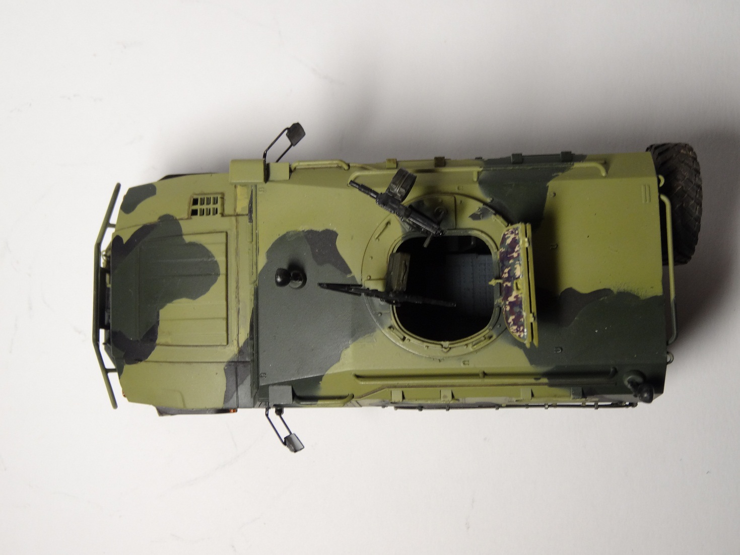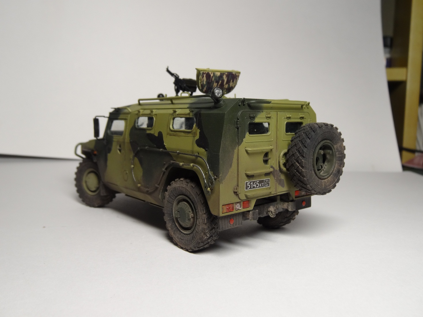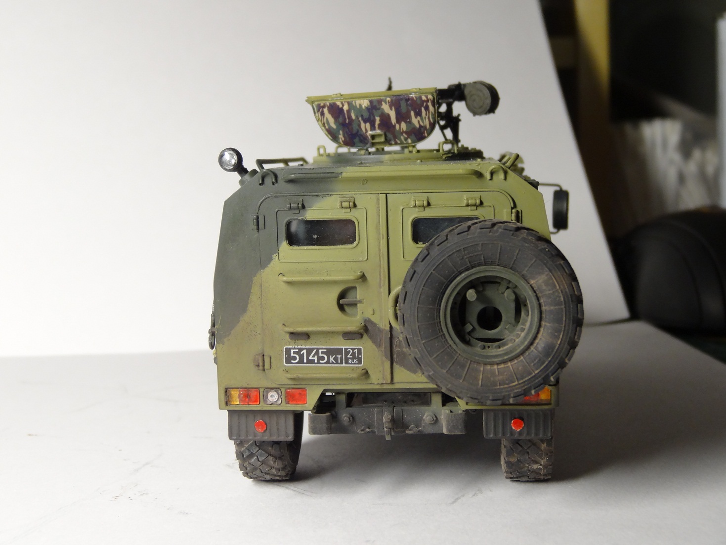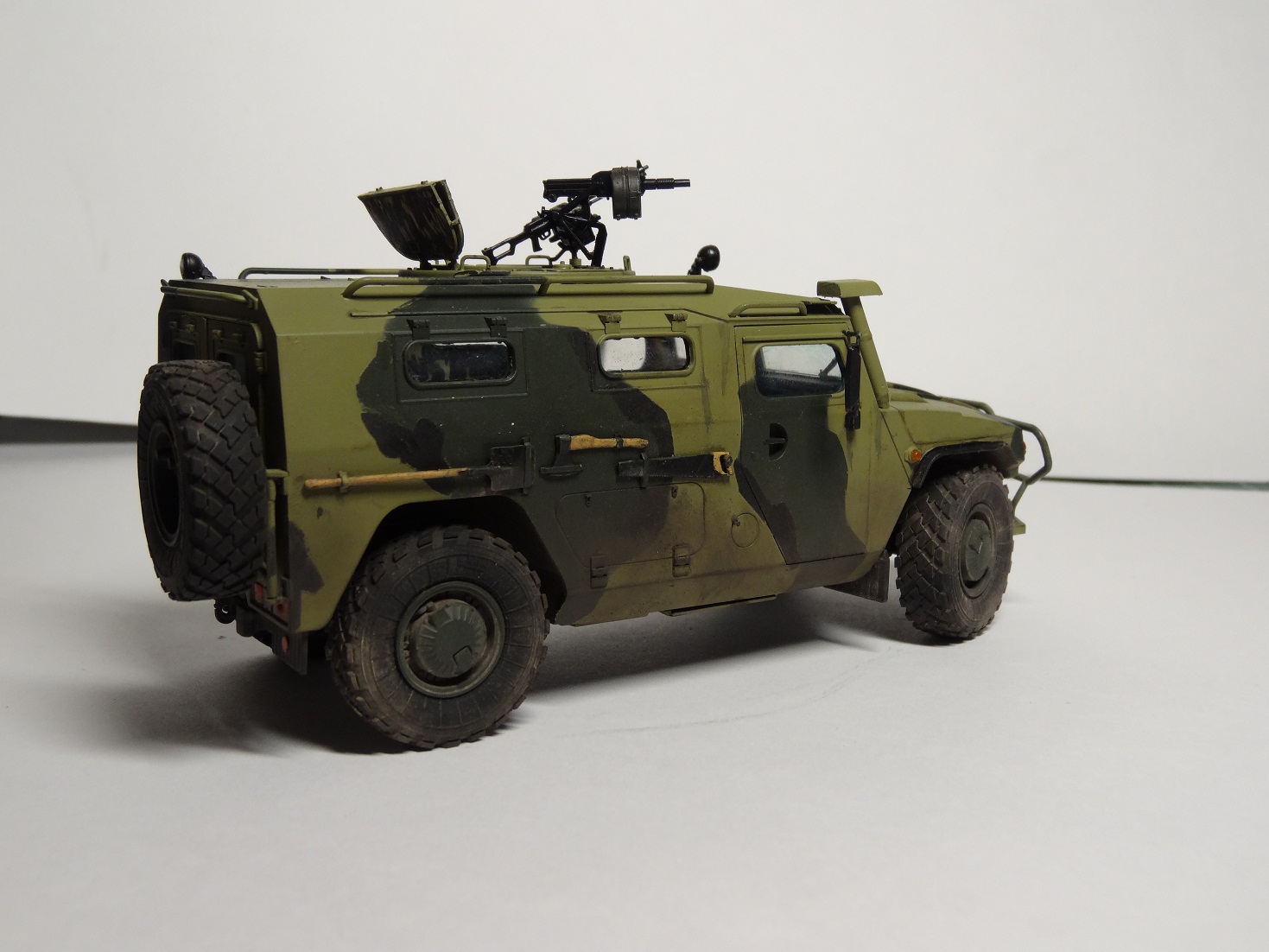 Хорошая модель, сам над такой сейчас вожусь.Камуфляж какой то странноватый, с цветами явный прокол. Еще не понравилась странная облезлость краски у левой фары.