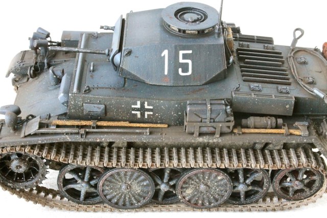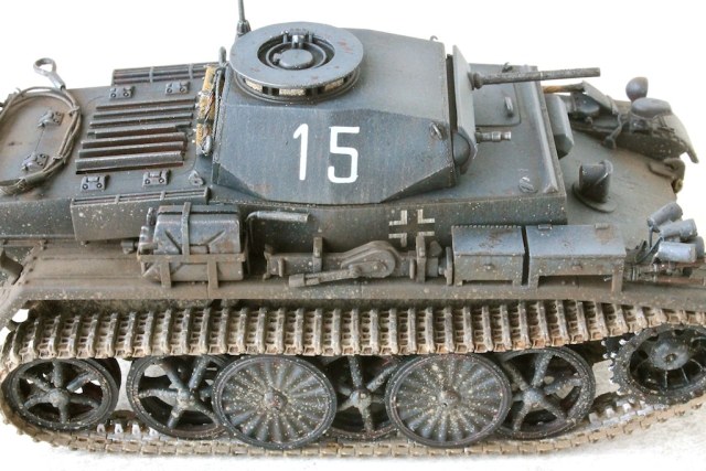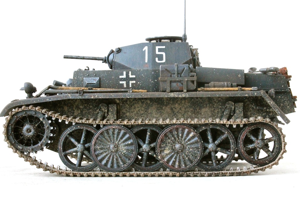 Собирал из коробки с незначительными дополнениями. Добавил троса, антенну и заменил крепления инструментов. Красил акрилом Tamiya, Lifecolor, Vallejo. Масло, пигменты MIG.