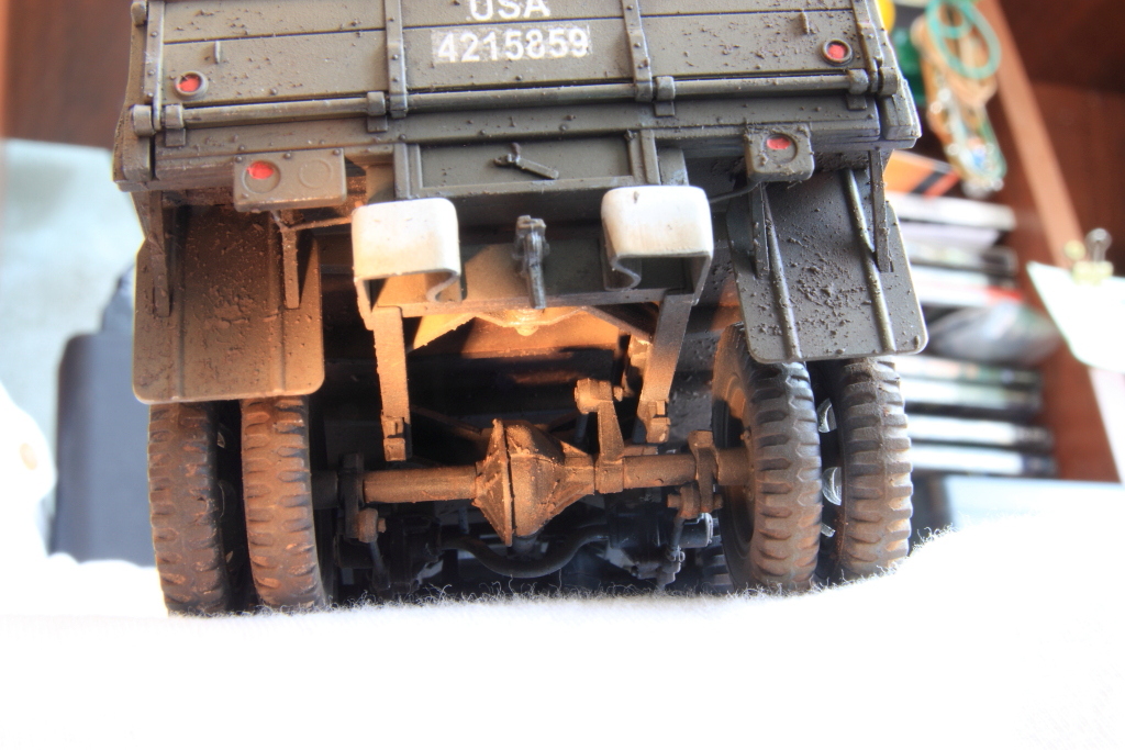Брызги грязи наносил используя кисть и аэрограф. После тонировки модель покрыта еще одним слоем лака Satin Vallejio.