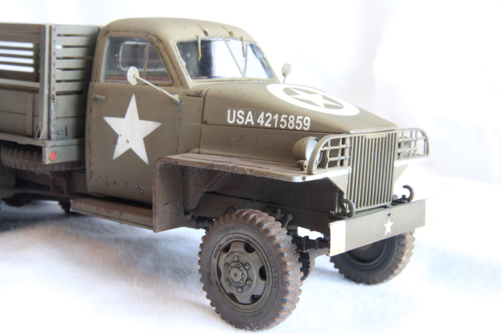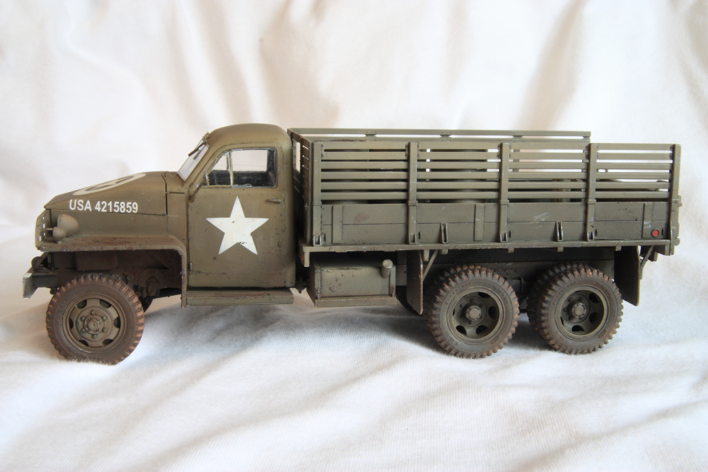 Это мой первый опыт сборки и окрашивания моделей, до этого только в юности собрал пару самолетов в 72 маштабе, поэтому соответствие прототипу, точность окраски, да и габаритные размеры на первом плане не стояли. Стояла задача просто попробывать методики покраски и тонировки принятые в современном модельном мире. Собирал изкоробочный вариант используя кит от компании ICM – 35511 Studebaker US6 WWII Army Truck 1/35.