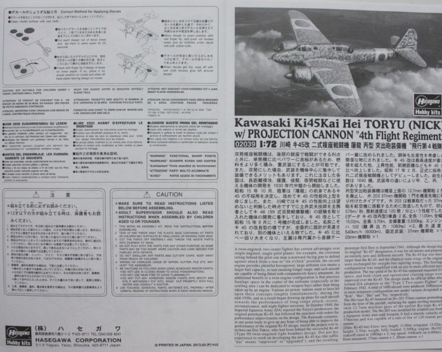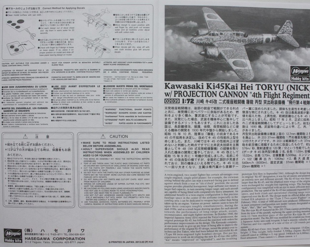 Модель Ки-45 в новой упаковке - серия Limited Edition, вариант Ki-45 Kai Hei с 37-мм пушкой в носовой части.