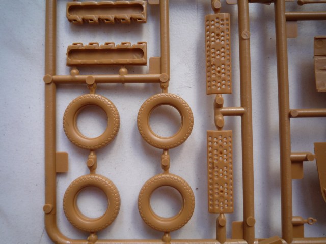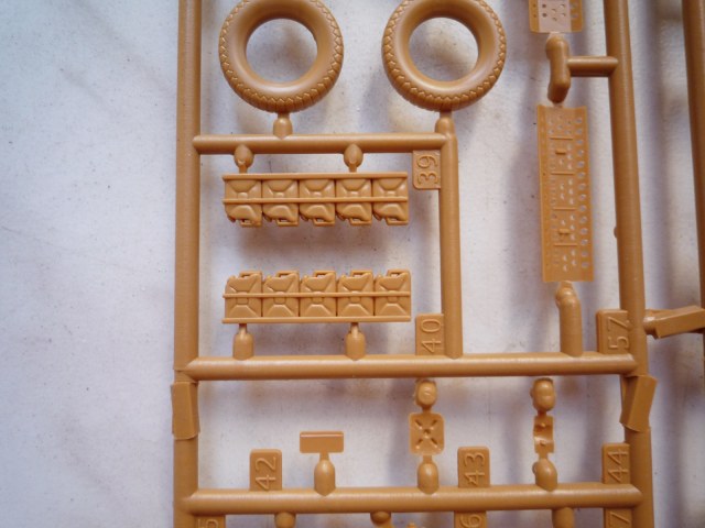 1) 1 большой литник с деталями из жёлтого, твёрдого пластика. Все детали отлиты хорошо, без утяжин и облоя. Следы толкателей с тыльной стороны, которая не будет видна.