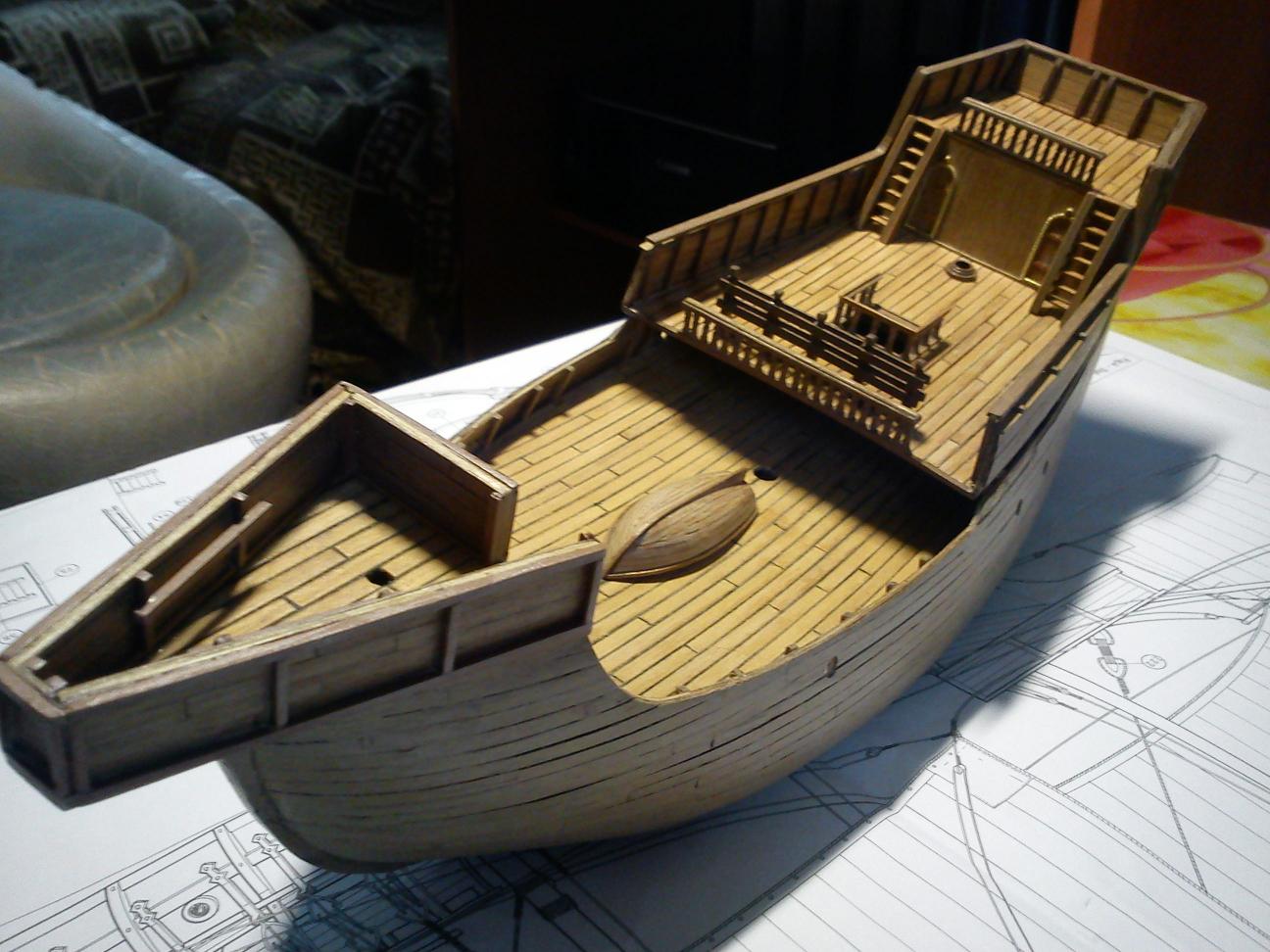 Владимир, эта отточка мастерства - поле для фантазии... Экспериментов в сборке было много: это и обшивка корпуса дважды с рейкой ореха (а не липы(!)с тонировкой), и вариации на тему декора, и дополнение модели лафетами пушек из дерева,и единое соединение частей корпуса(в разроботке КИТА, есть раздиление) и дополнения деталировки.....