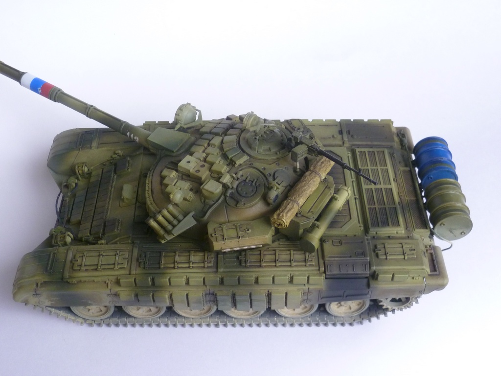 гребни на траках грифелем б натереть..а чем он не т-72б?флаг на эжекторе красили во время боёв в чечне как раз на т-72б..косяки модели можно и не обсуждать..вашей вины тут нет...проводку и приборы наблюдения из дивиди могли б и сделать