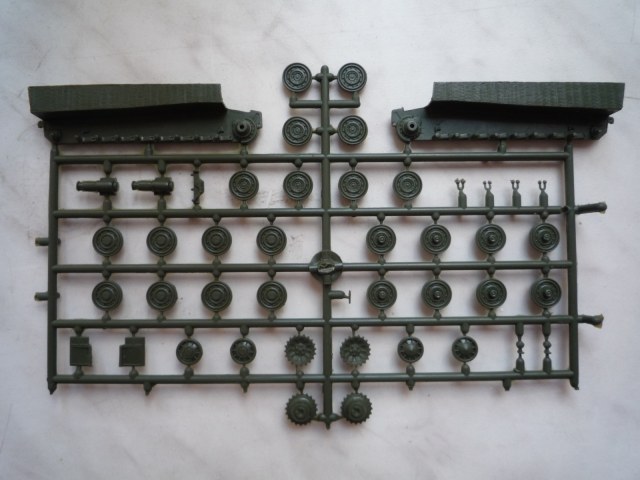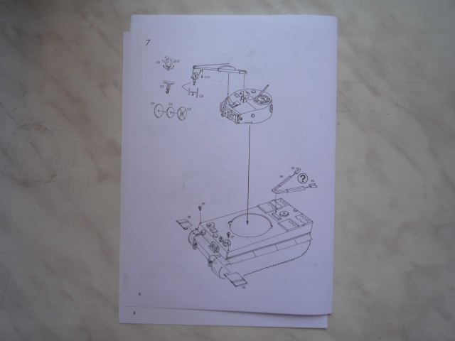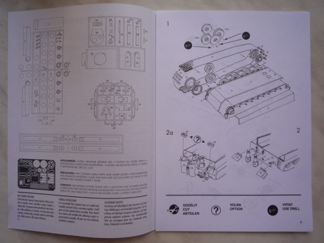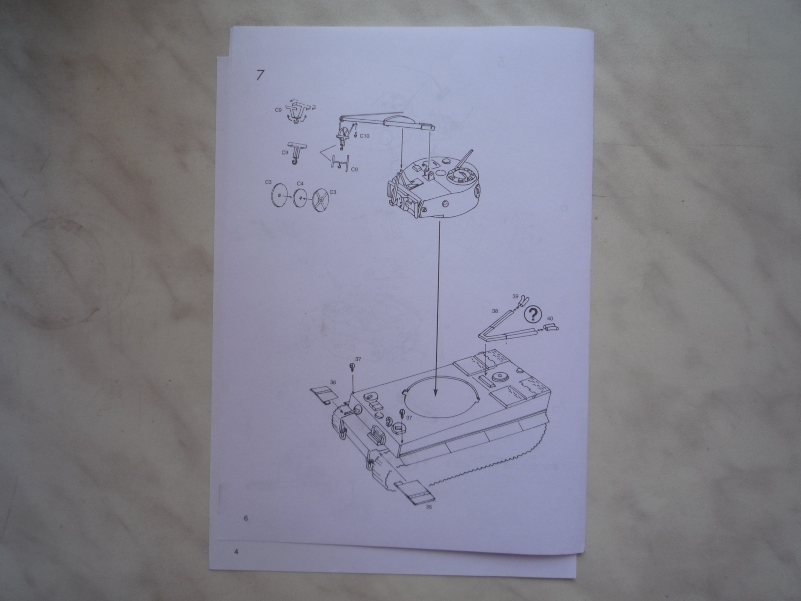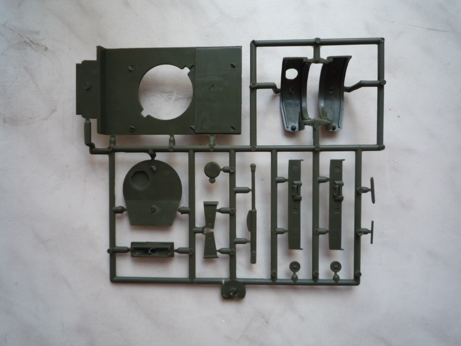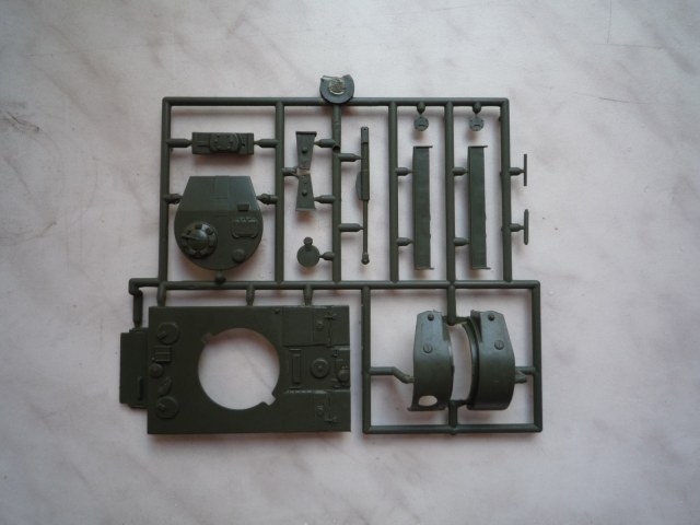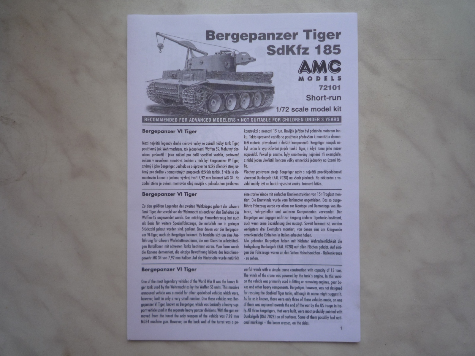 Все детали отлиты из двух кусков пластика, затем, скрепленные вместе, в том числе и корпус. Волнистый циммерит отлит криво. Естественно, из-за такого литья всё качество модели идёт коту под хвост. При рассмотрении модели обнаружены литые ведущие катки и ленивцы. Непонятно, для чего этой модели две лобовые брони со щелями для механика-водителя? Также имеется кривая инструкция, которую хотели сделать книжецей, но забыли добавить скрепки. Полностью отсутствуют декали и имитация троса. Более того, в самой модели не соблюдена мат. часть: на коробке обозначен ранний Тигр, внутри же мы получаем позднего Тигра. Но, это пол беды.