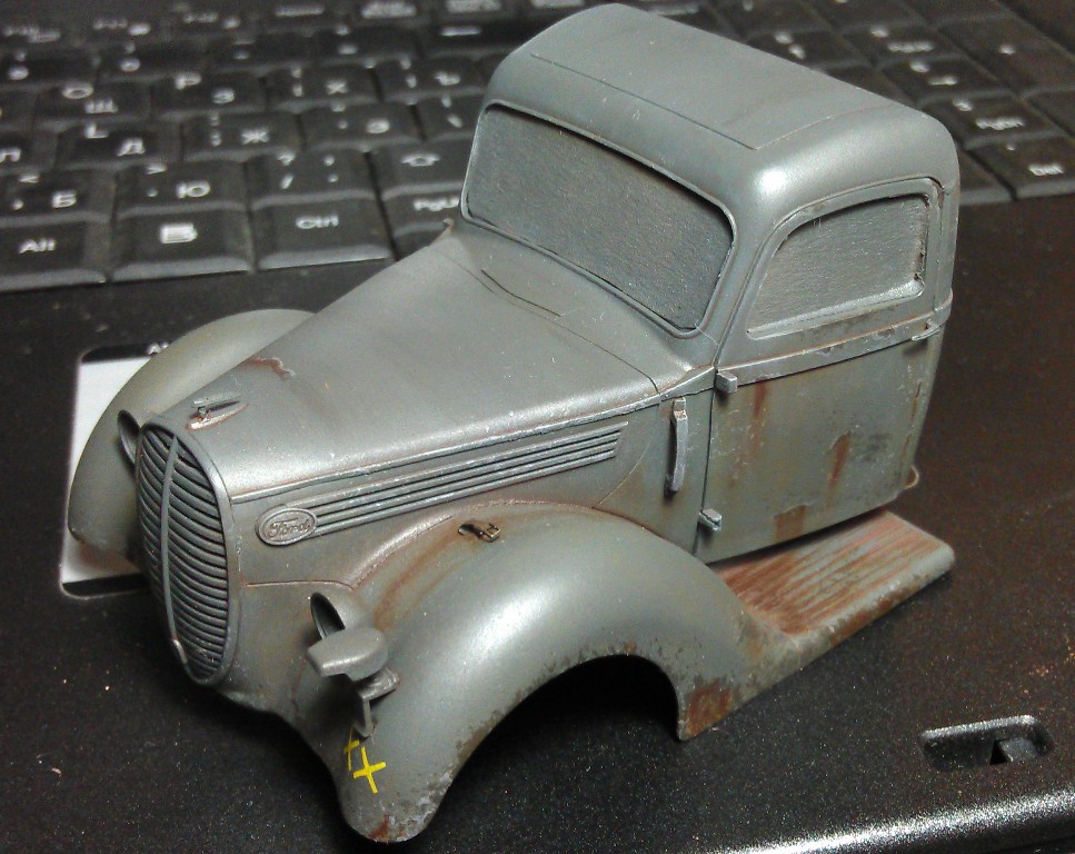 Точно, краска на кузове очень жизненно потрескалась - так и бывает, когда кузов поверх "жирной" краски покрывают "сухой". На мой взгляд, не хватает пыли на лобовом стекле и дворника.