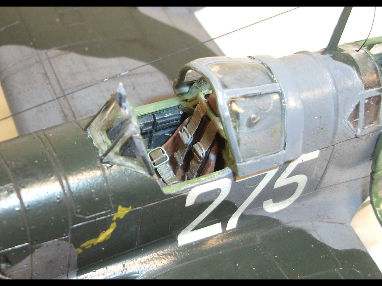 Модель загрунтована, затем накатана клепка. Красилась акрилами Тамия и Mr.Color. Декали показали себя не с лучшей стороны,