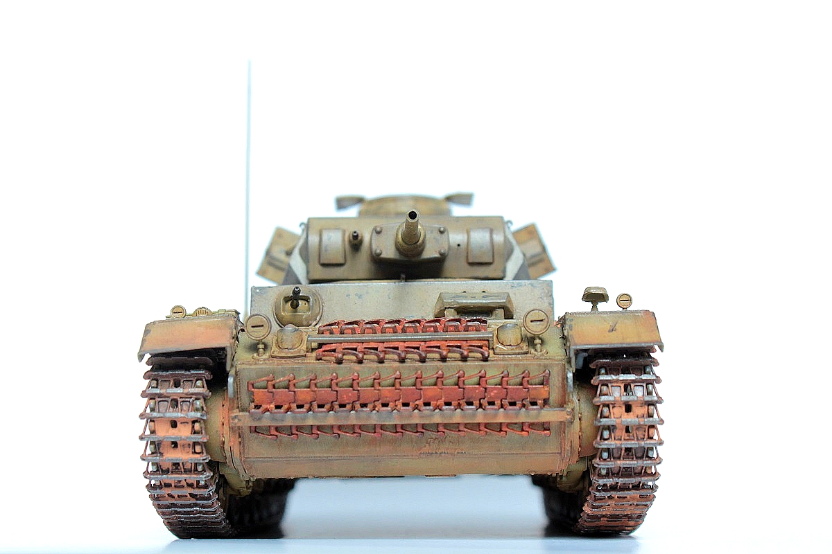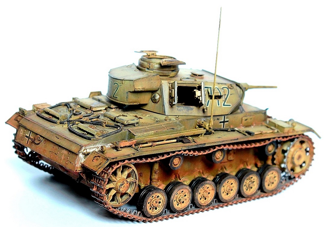 Моделька хорошая,мне лично понравилась,ибо видно что старался(не люблю придираться).А насчет ржавчины на танке из африканского корпуа,то это можно легко объяснить.Танки африканского корпуса перебрасывали под курскую дугу,а некоторые даже не успевали перекрашмвать.Кто знает сколько эта тройка потом зим переждала