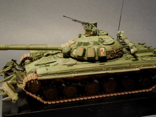 Здравствуйте Коропчане. Представляю модель Т-64А 1973 г. выпуска, прошедшая капитальный ремонт после1979г. Танк 810-й бригады морской пехоты Черноморского флота перед сдачей на базу хранения. Модель от «Trumpeter», из коробки. От себя добавил проводку, и крепление резиновых экранов из доширпластика. Полностью перепилил трал КМТ -6 от «Скифа».