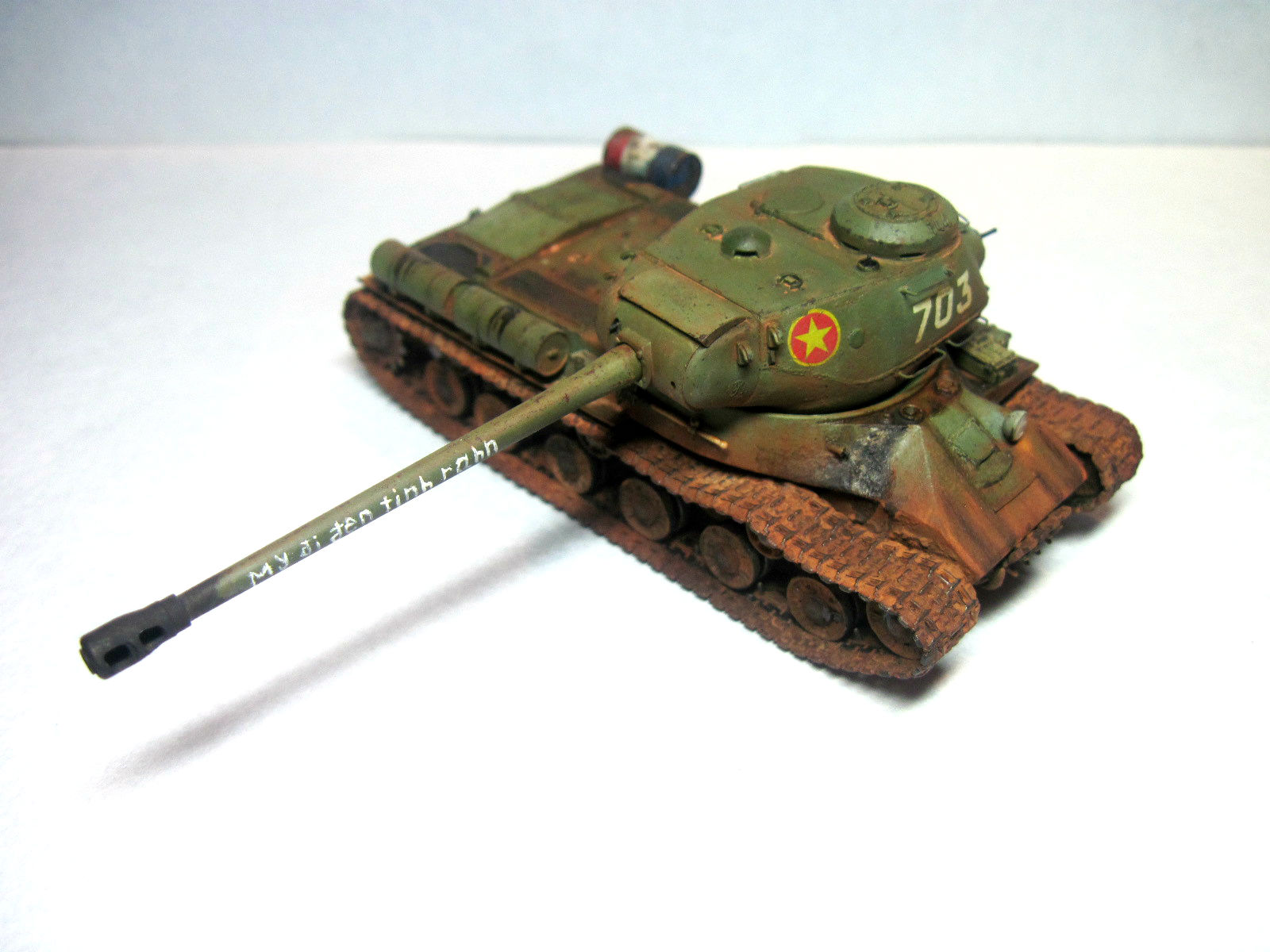 Представляю вам ИС-2 на Вьетнамскую войну. Хоть и не существует фотографического подтверждения участия этой машины в войне 57ого-75ого в Юго-Западной Азии, имеются лишь письменный упоминания о том, что железный Иосиф засветился на той войне.