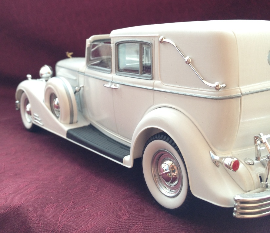 Спасибо всем за отзывы, думал больше камней полетит) Дно авто выложу, да двигатель красил, но так в легкую, т.к. капот намертво приклеен, то выложу фото в рабочей стадии сборки двигателя. Про покраску - все детали красились (белым баллоном Tamiya, кисточкой нитрокрасками Tamiya), кроме белых полос на шинах, и откидной крыши, также были покрыты некоторые детали хромом (рама радиатора, колесные диски). Насчет лакировки, думал я, думал, насчет глянца и придумал положить лак полу-глянцевый Tamiya, из-за соображений, что машины в то время не блестели как сегодняшние обмылки)), или блестели, но не сильно. Может и ошибся конечно в выборе лака, но думаю с блеском больше было бы игрушечности. Дева шла в комплекте. Да, согласен насчет рисунка рассеивателя, замечено было, когда стекла были установлены в свои посадочные места)) Расшивку выделять пока не умею, буду изучать в дальнейшем, про совет с клеем спасибо, учту тоже. А первая Мафия и все в ней машины вообще космос, их проработка, деталировка, заигрывался тоже в то время. Еще скоро пару работ выложу из другой области, ну и засматриваюсь на Aston Martin DBS Tamiya со стандартным трвлом, оч. хочу собрать. Кто собирал, выложите плиз. Всем успехов в жизни и на модельном поприще.