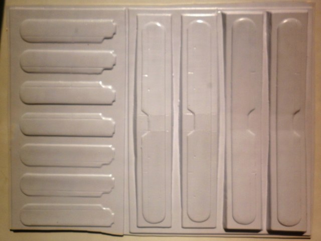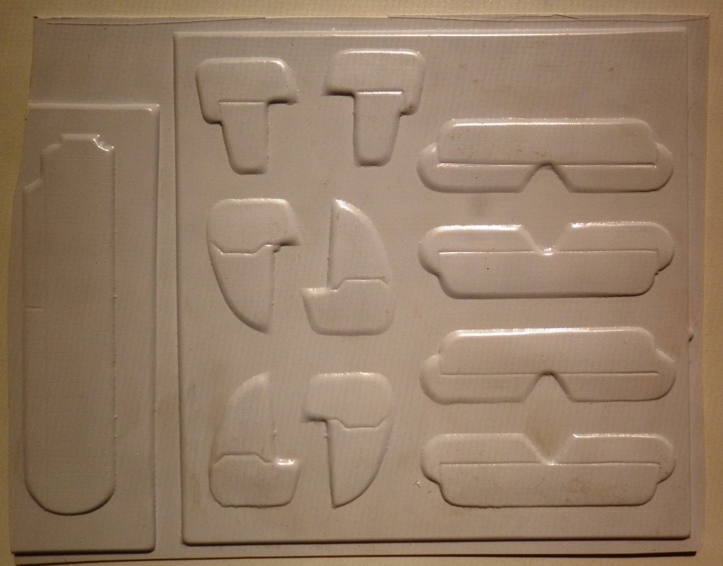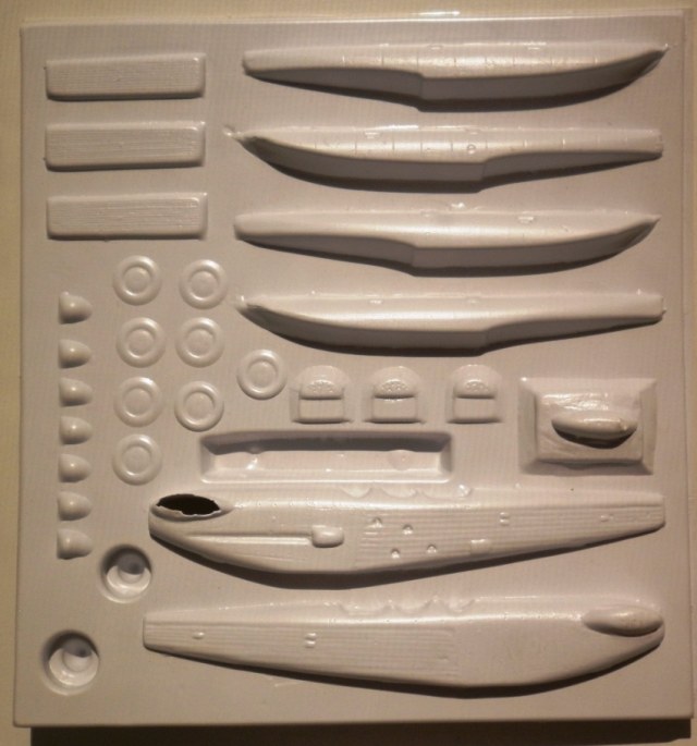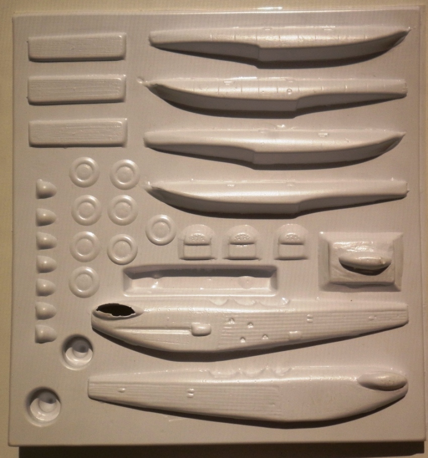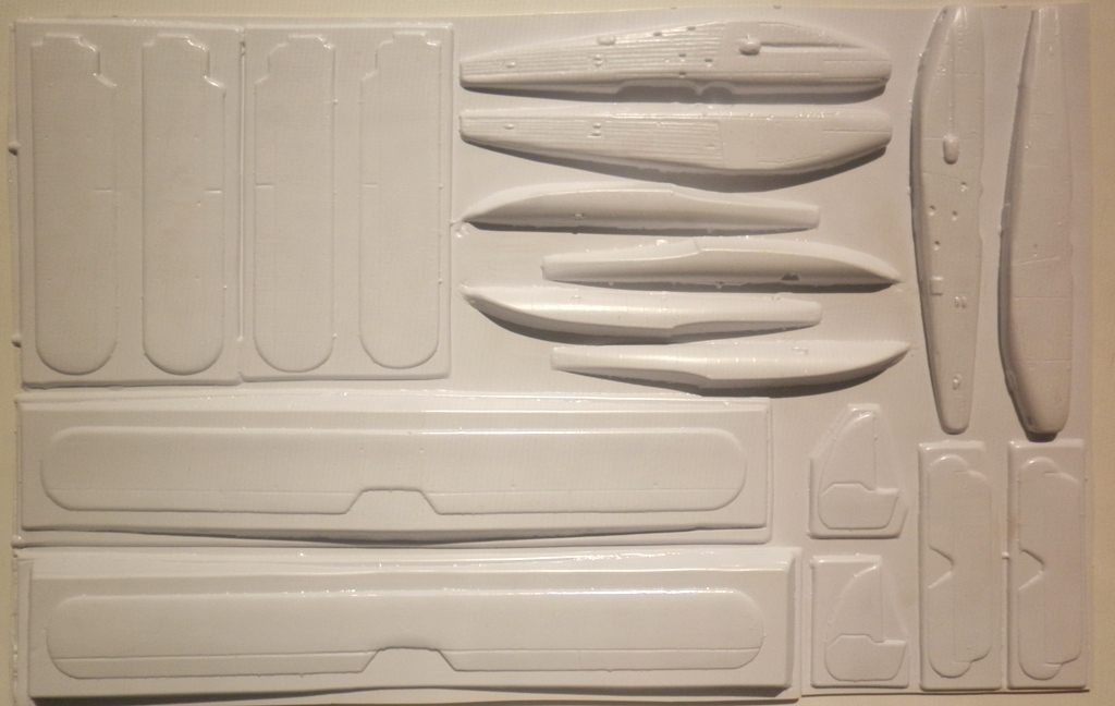 Пластик . Средней толщины белый пластик . Толщина деталей , в основном , разумная . Исключение - фюзеляж одной из модификаций гидросамолёта. Вытяжка была так велика что толщина пластика стала тоньше папиросной бумаги. Впрочем , это лечится эпоксилином.
