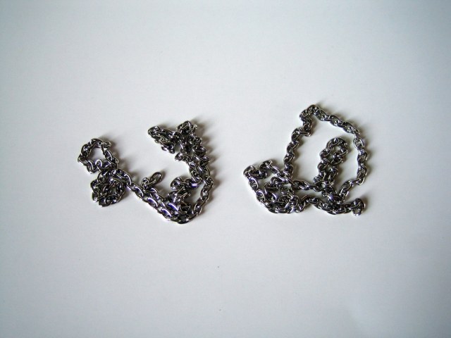 Также в наборе даны два отрезка блестящей никелированной цепочки, которым придется как-то придать ржаво-эксплуатируемый вид взамен гламурно-бижутерного. Но это уже дело техники.