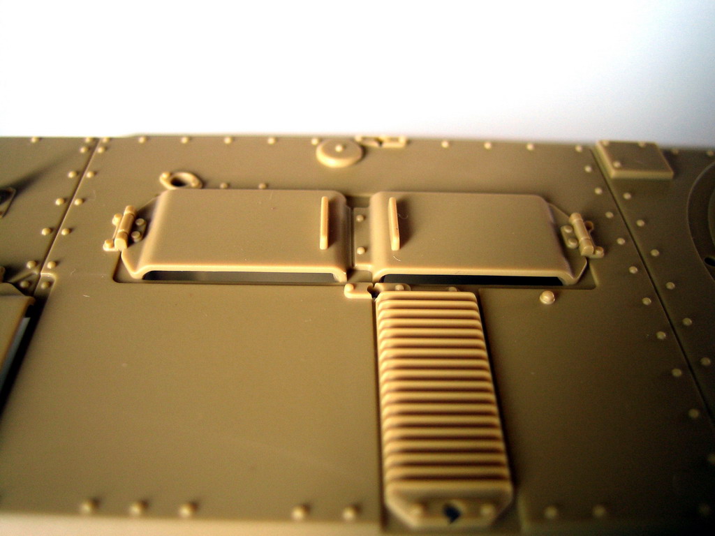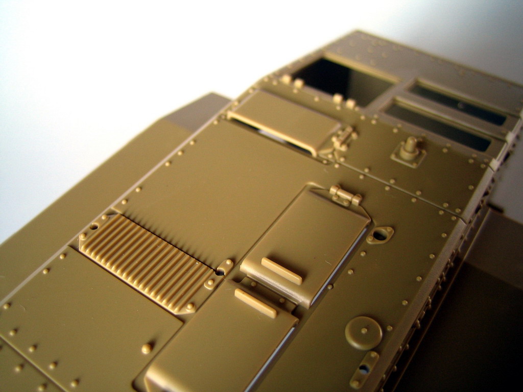 Ну я особо ещё не изучал матчасть, обычно это делаю непосредственно при постройке, но в дополнение к замеченному ещё вылезло отсутствие пулестойких болтов на маске 75-мм орудия. Кстати, на некоторых документальных фото там просто отверстия, но хотя бы их надо сделать, т.к. Тамия в этих местах поленилась что-либо изобразить. Думаю, ещё выяснится много чего интересного. Но сама модель мне все равно нравится.)))