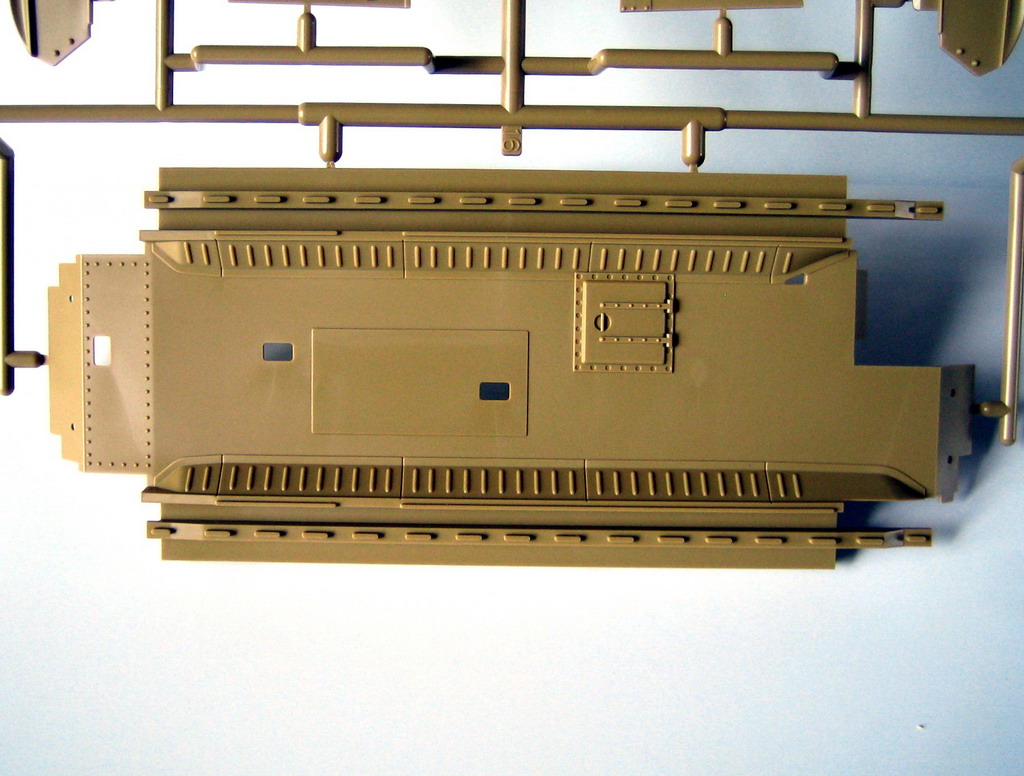 Присутствуют 2 варианта надгусеничных полок: широкие и узкие. Тут уже надо смотреть по конкретному прототипу, какой именно вариант для него характерен. То же самое и с выхлопными патрубками, они так же представлены в двух вариантах, хотя, насколько мне известно, их было порядка четырех разновидностей. Так что матчасть придется немного покопать.