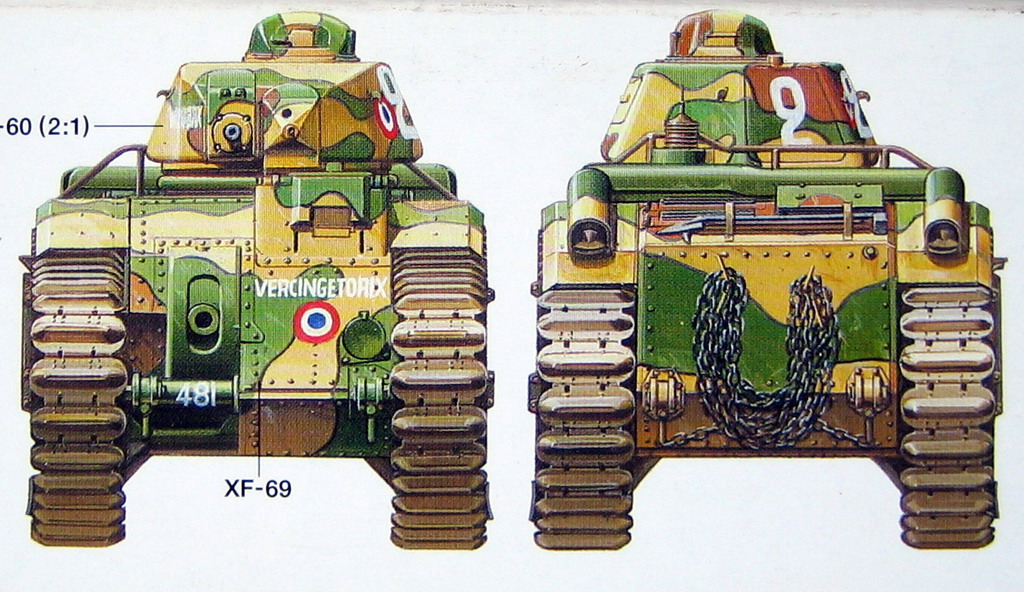 Инструкция, вроде бы понятная, представлена в виде гармошки на 10 страницах. В отдельном 4-страничном буклетике предоставлена история танка на 4-х языках (русский не в почете). Там же даны 4 варианта окраски. Как известно, каждый из этих танков носил собственное имя. Нам предлагают имена “Bourrasque”, “Vercingetorix” (вариант окраски продублирован и на коробке), “NivermaisII” и “Indochine”. Соответственно, даны и декали под эти варианты.